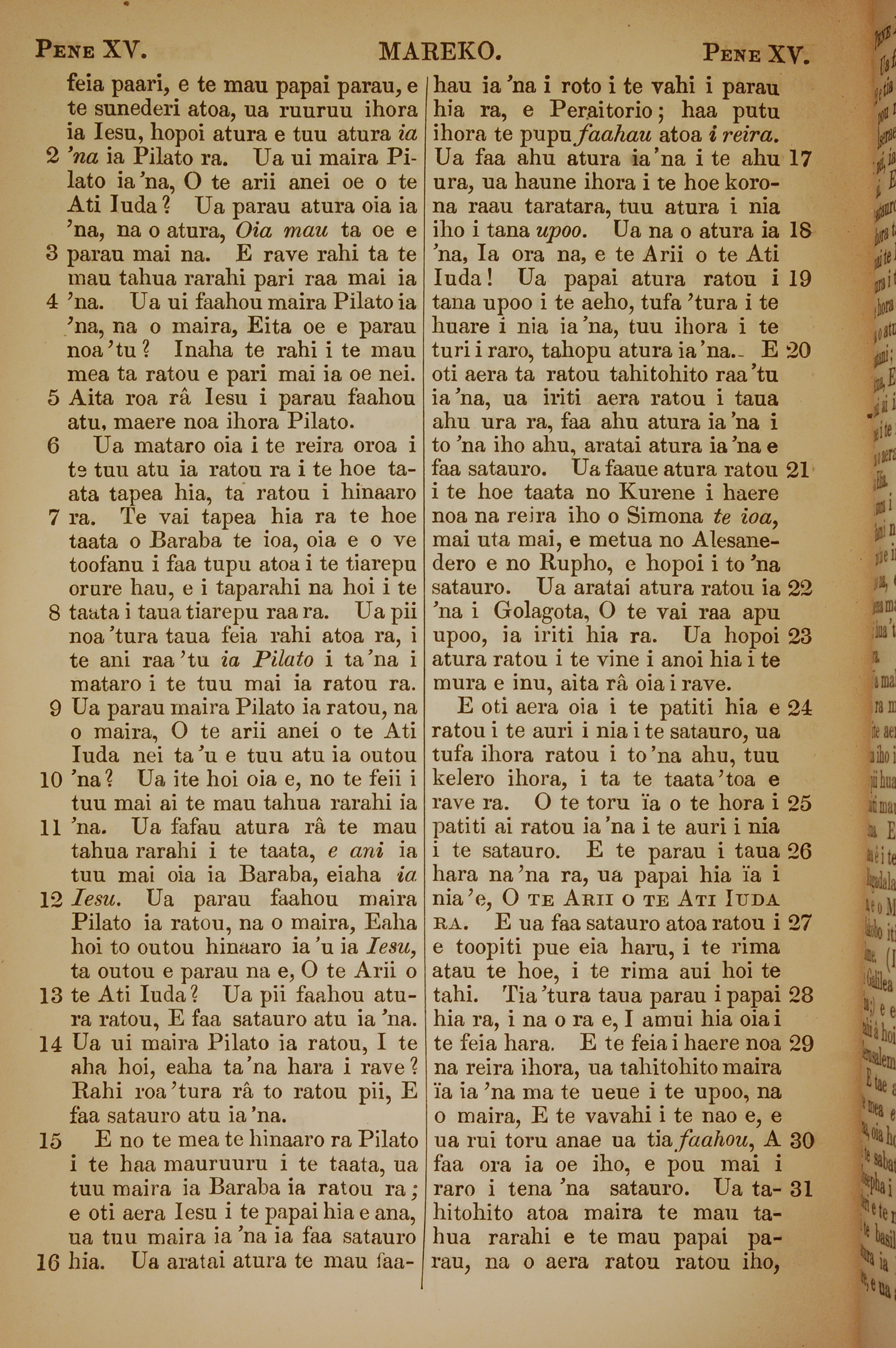 1853年塔希提語新約全書 馬可福音 15 章 2 節到 15 章 31 節