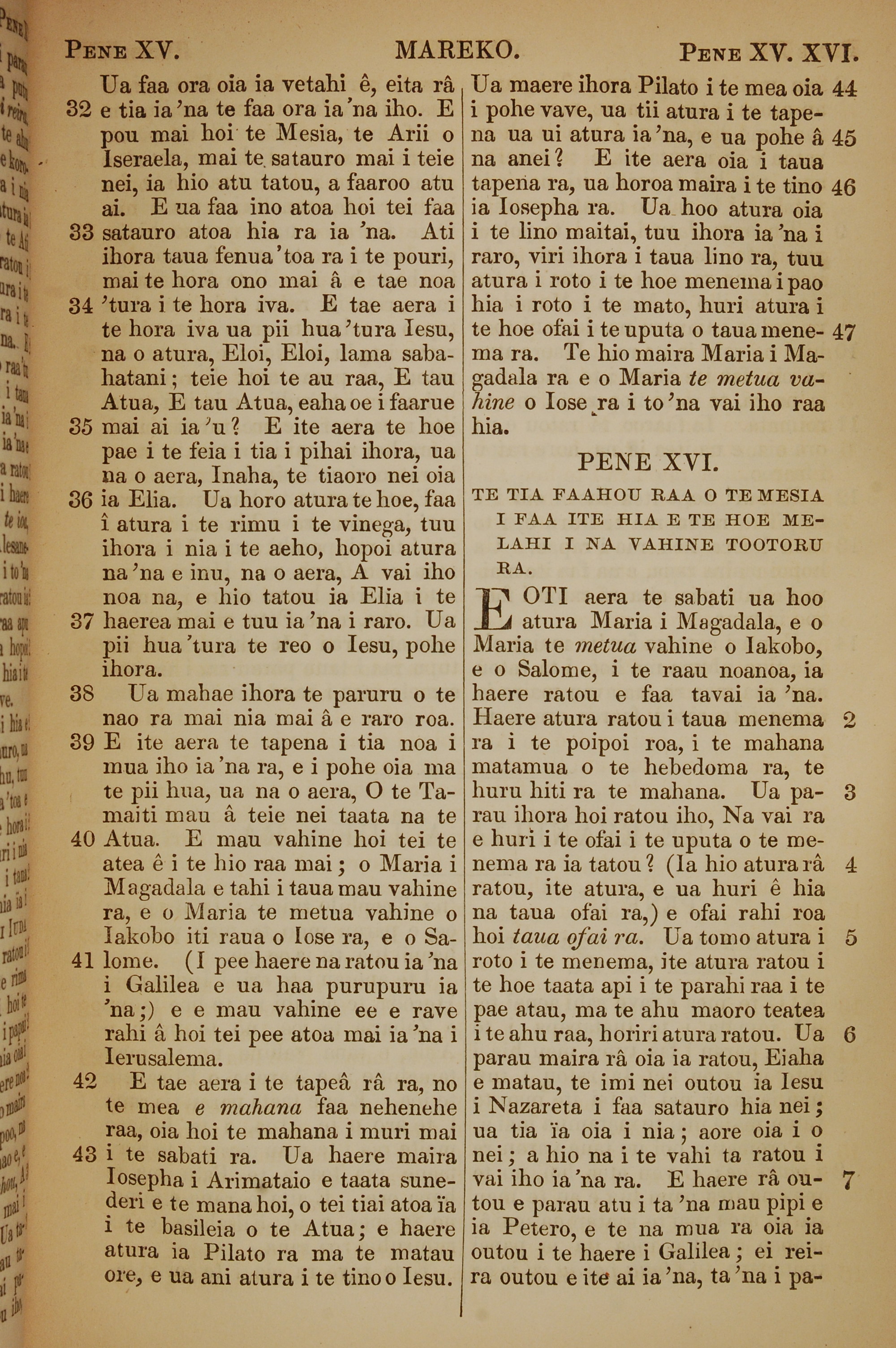 1853年塔希提語新約全書 馬可福音 15 章 32 節到 16 章 7 節