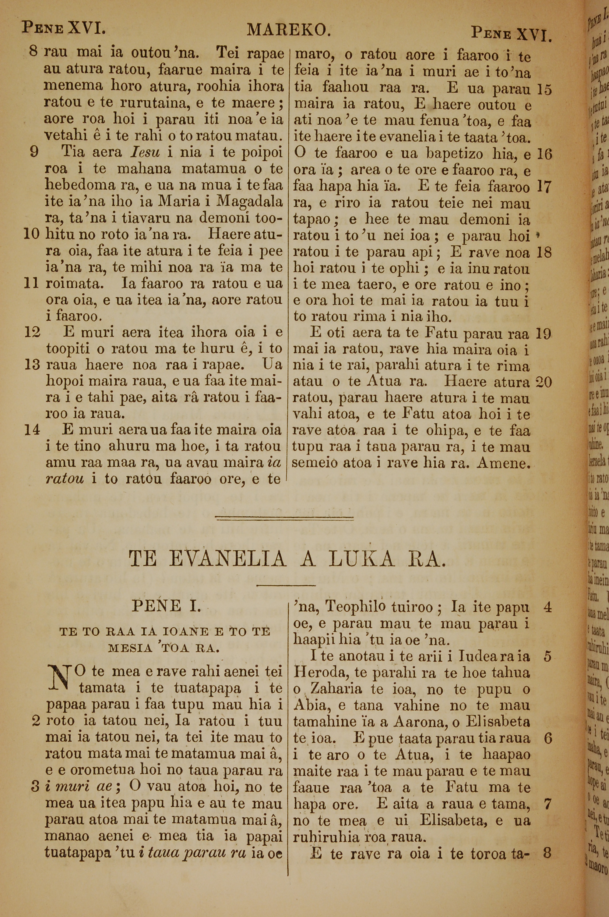 1853年塔希提語新約全書 馬可福音 16 章 8 節到 16 章 20 節