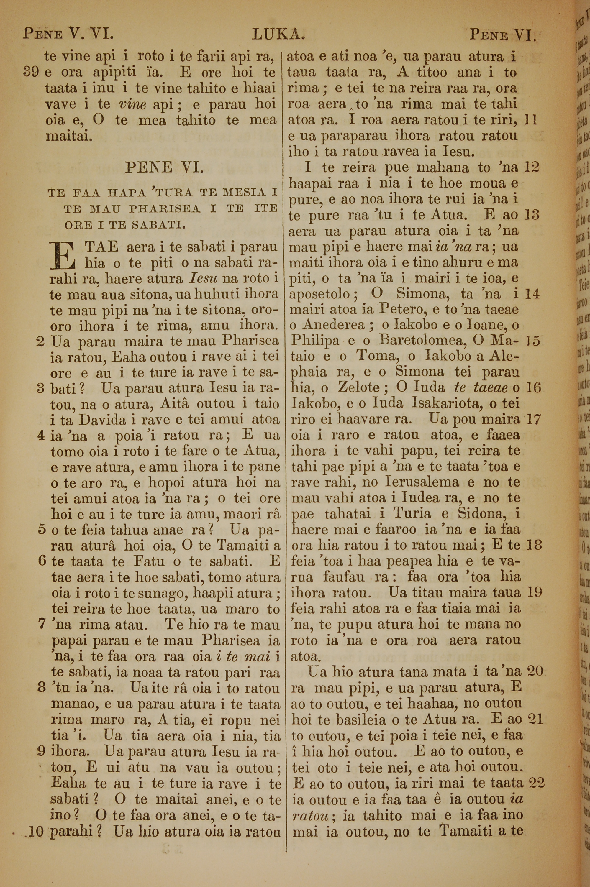 1853年塔希提語新約全書 路加福音 5 章 39 節到 6 章 22 節
