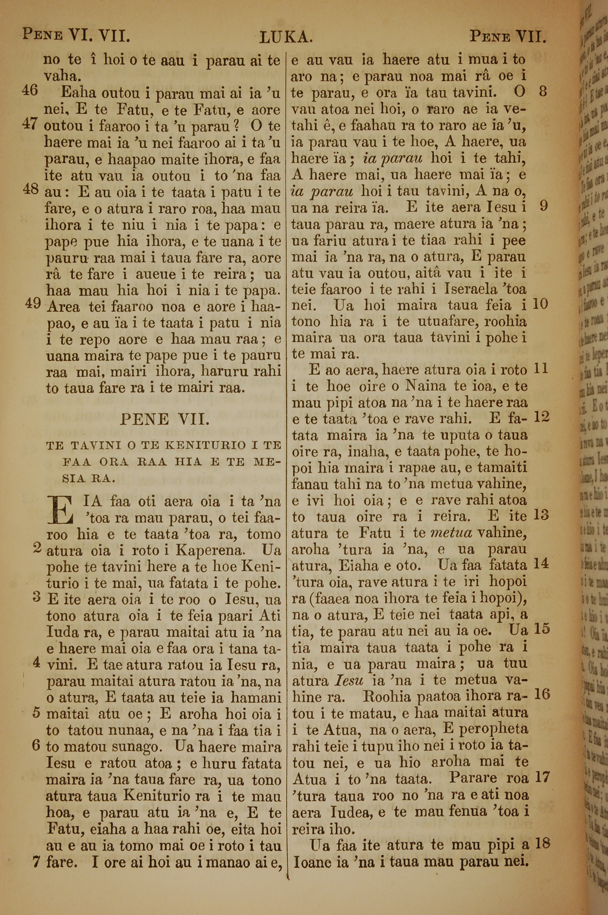 1853年塔希提語新約全書 路加福音 6 章 46 節到 7 章 18 節