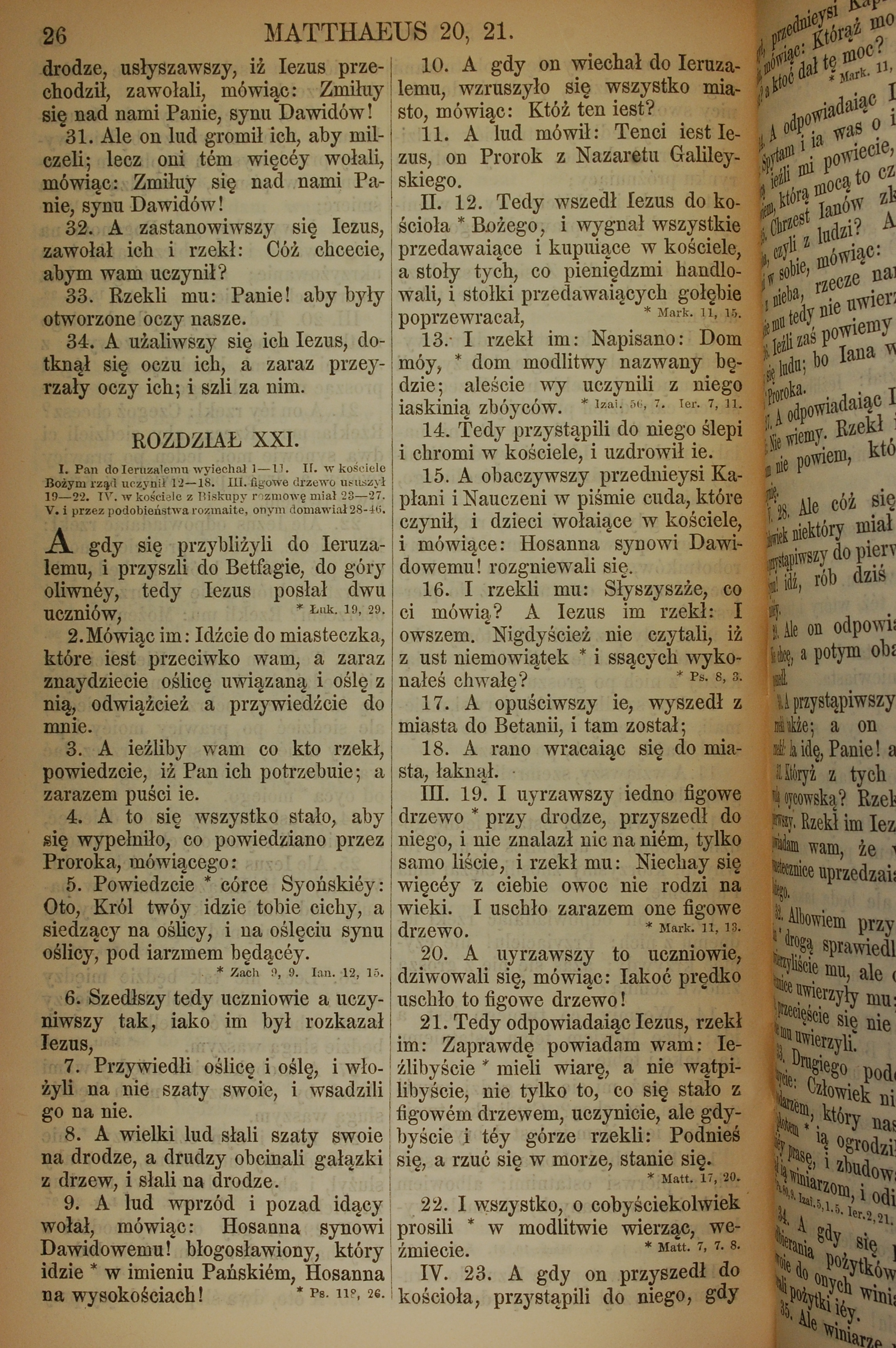 1857年波蘭文新舊約全書 馬太福音 20 章 31 節到 21 章 23 節