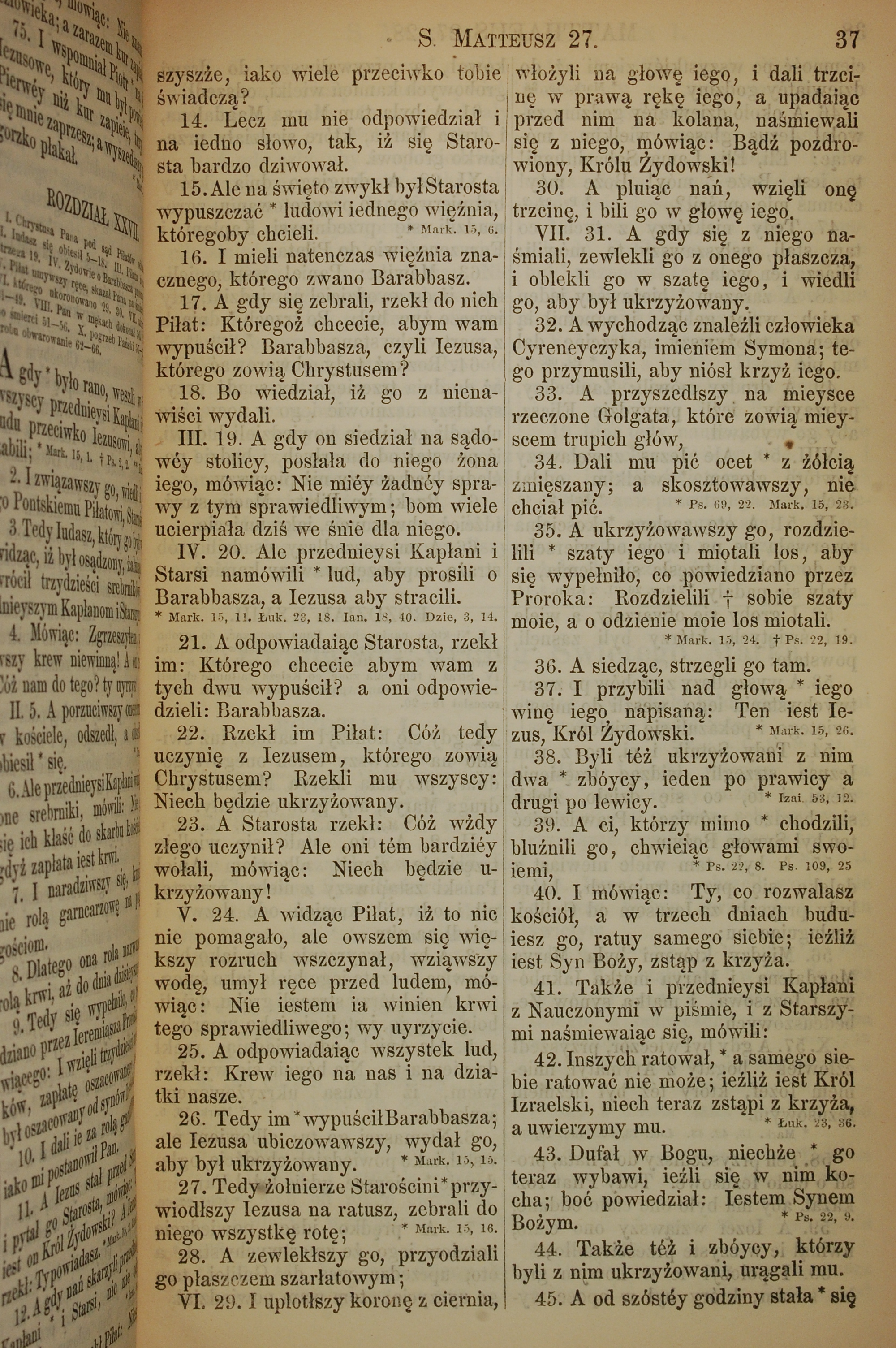 1857年波蘭文新舊約全書 馬太福音 27 章 14 節到 27 章 45 節