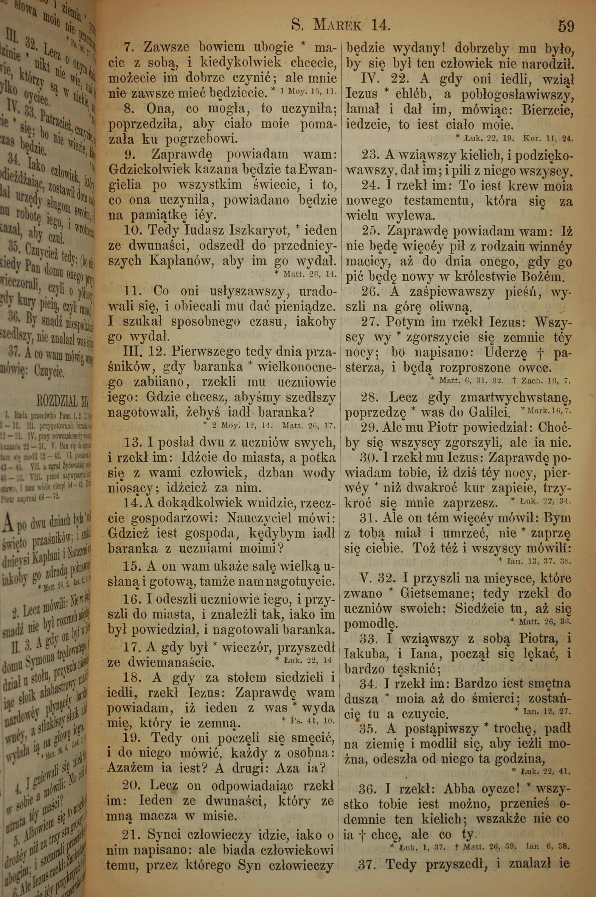 1857年波蘭文新舊約全書 馬可福音 14 章 7 節到 14 章 37 節