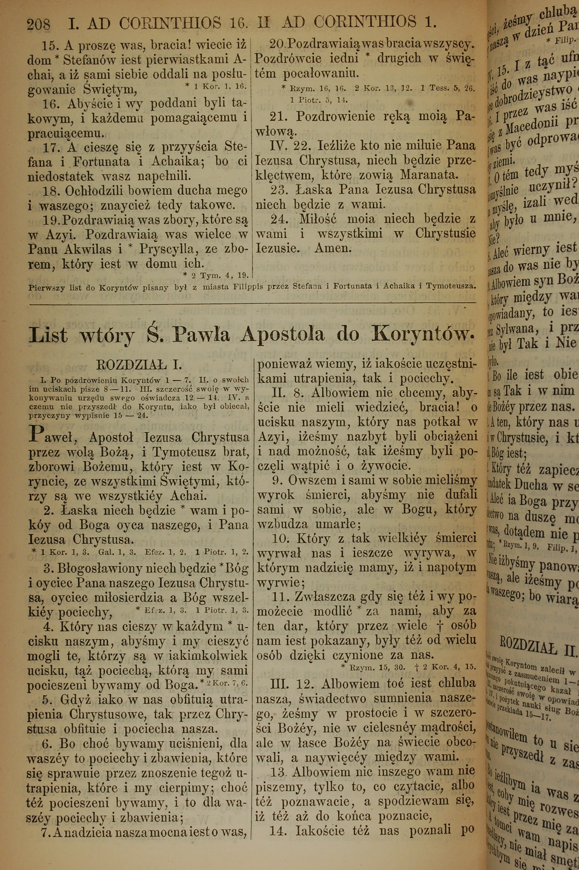 1857年波蘭文新舊約全書 哥林多前書 16 章 15 節到 16 章 24 節