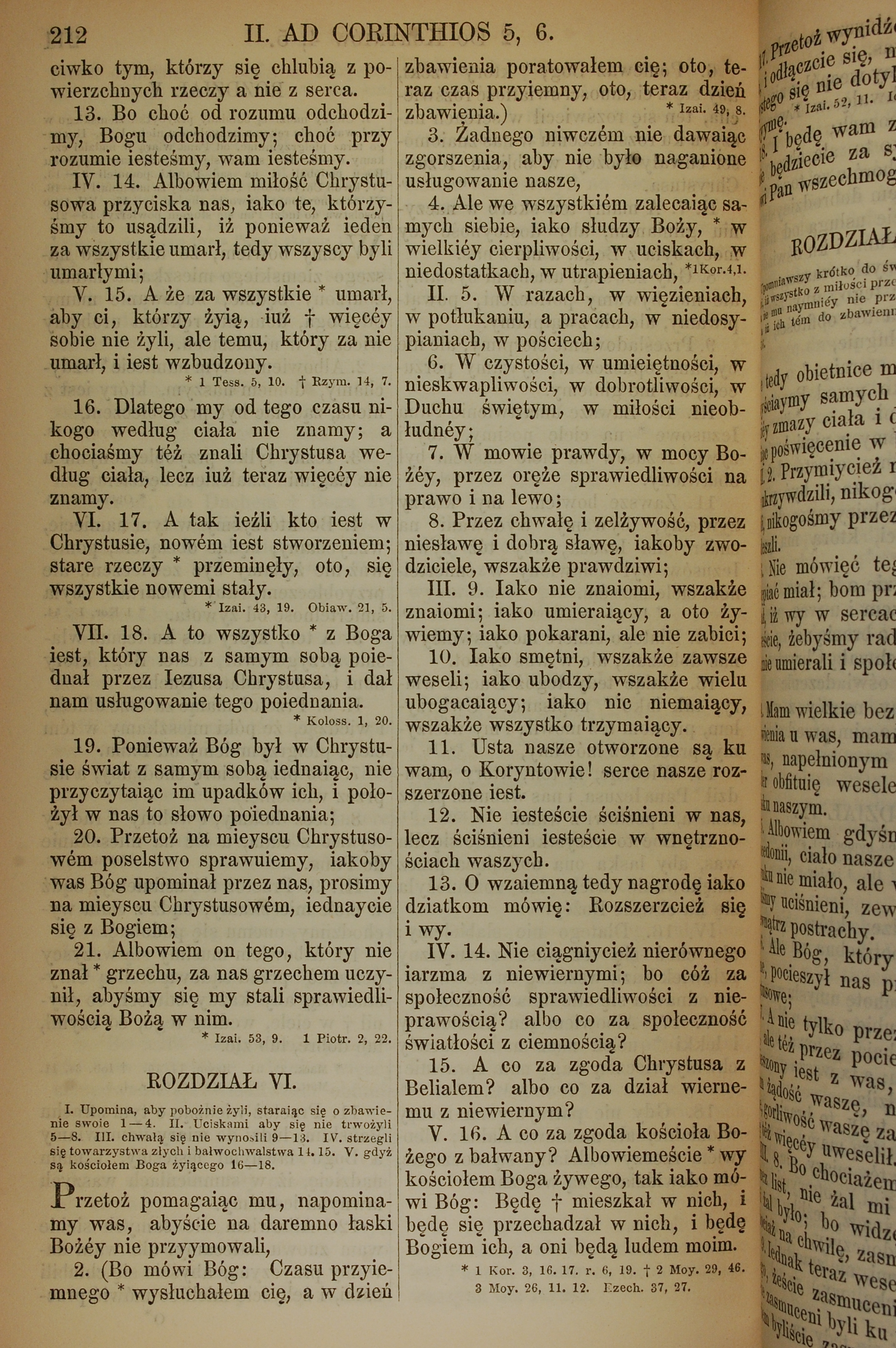1857年波蘭文新舊約全書 哥林多後書 5 章 13 節到 6 章 16 節