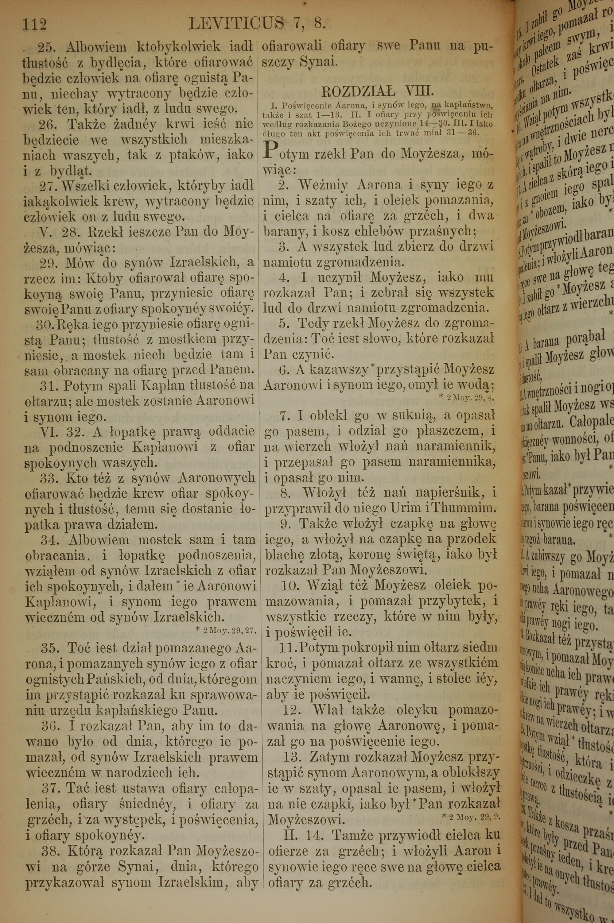 1857年波蘭文新舊約全書 利未記 7 章 25 節到 8 章 14 節