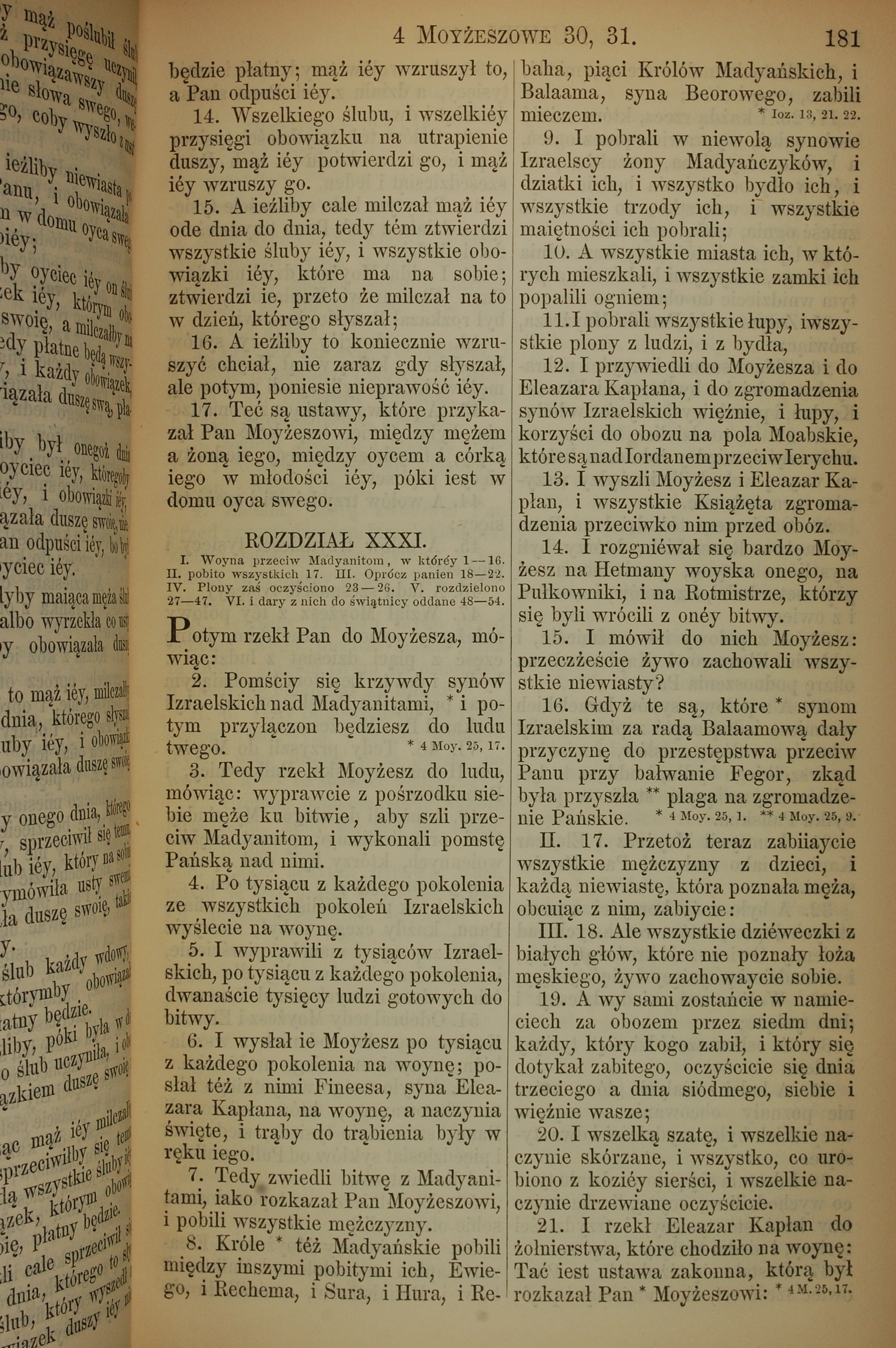1857年波蘭文新舊約全書 民數記 30 章 14 節到 31 章 21 節