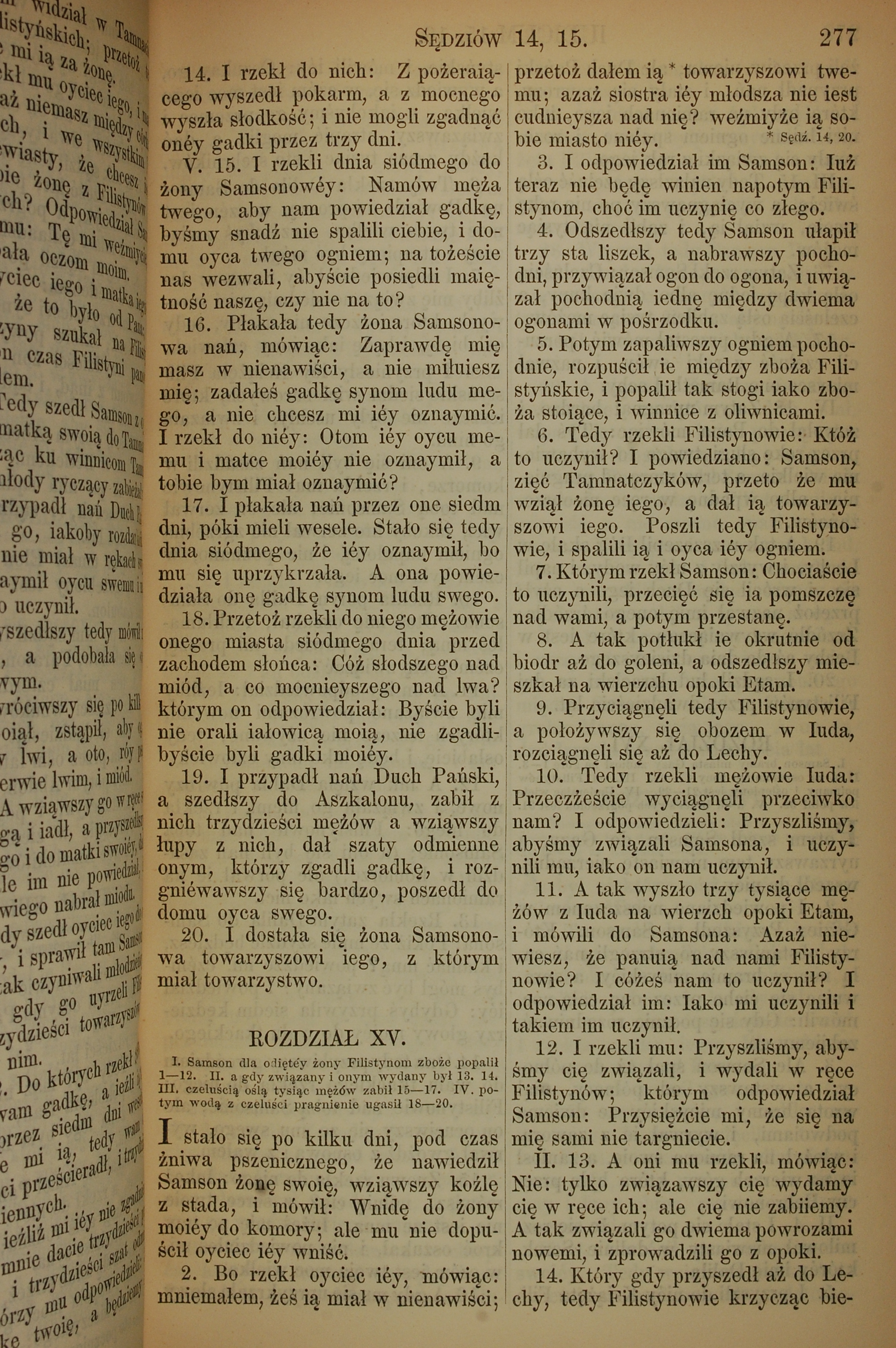 1857年波蘭文新舊約全書 士師記 14 章 14 節到 15 章 14 節