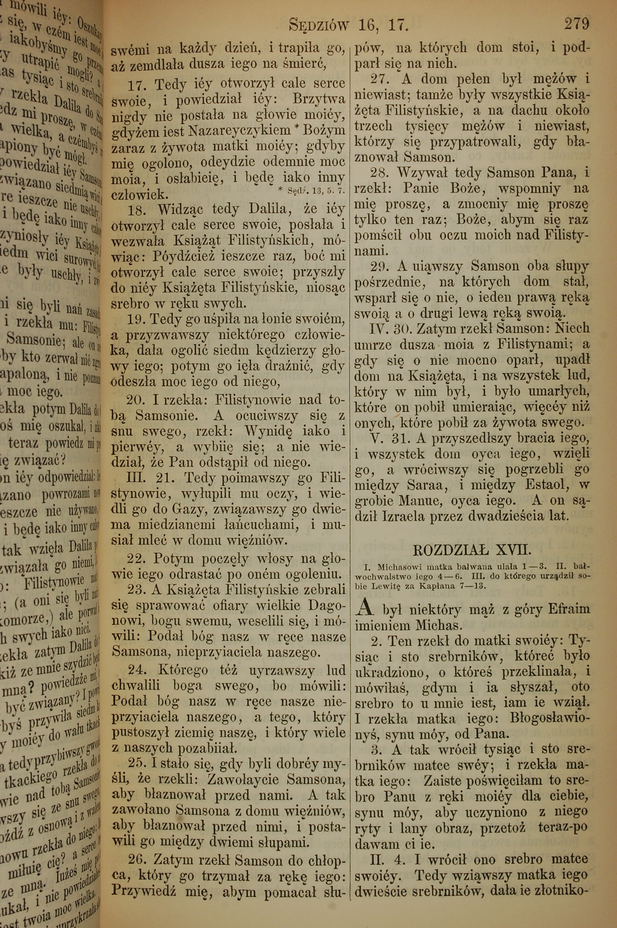 1857年波蘭文新舊約全書 士師記 16 章 17 節到 17 章 4 節