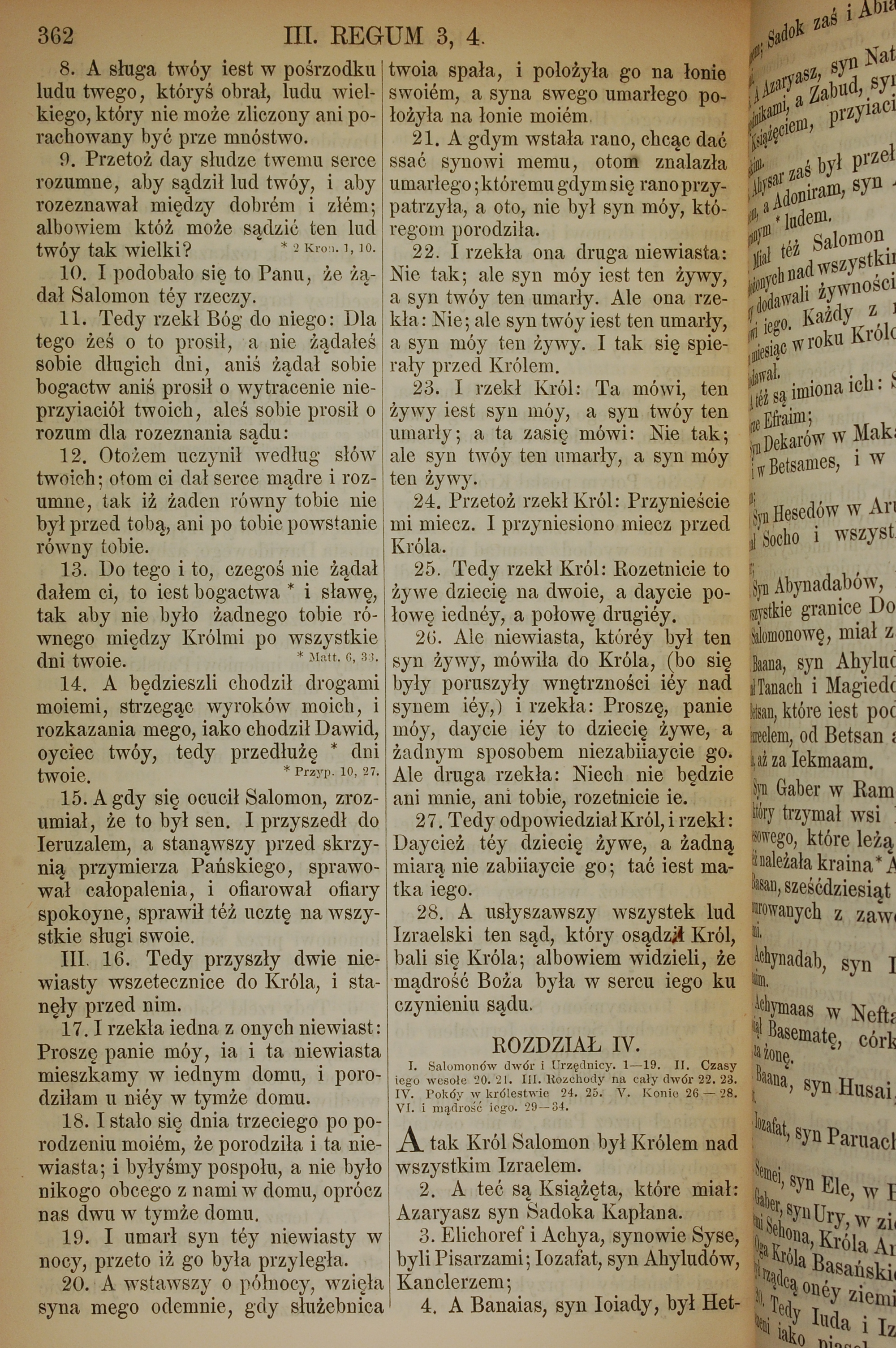 1857年波蘭文新舊約全書 列王紀上 3 章 8 節到 4 章 4 節