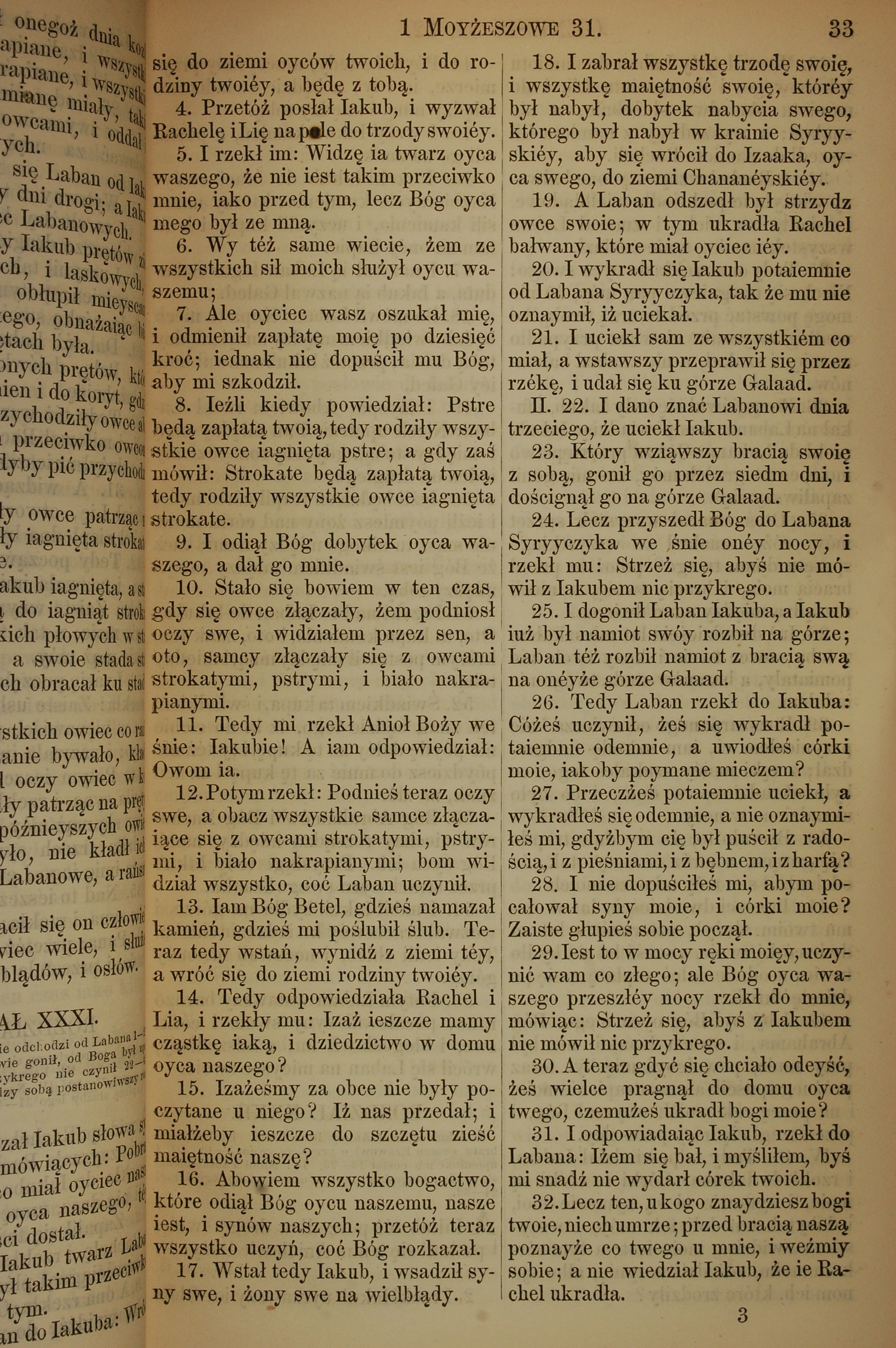 1857年波蘭文新舊約全書 創世記 31 章 4 節到 31 章 32 節