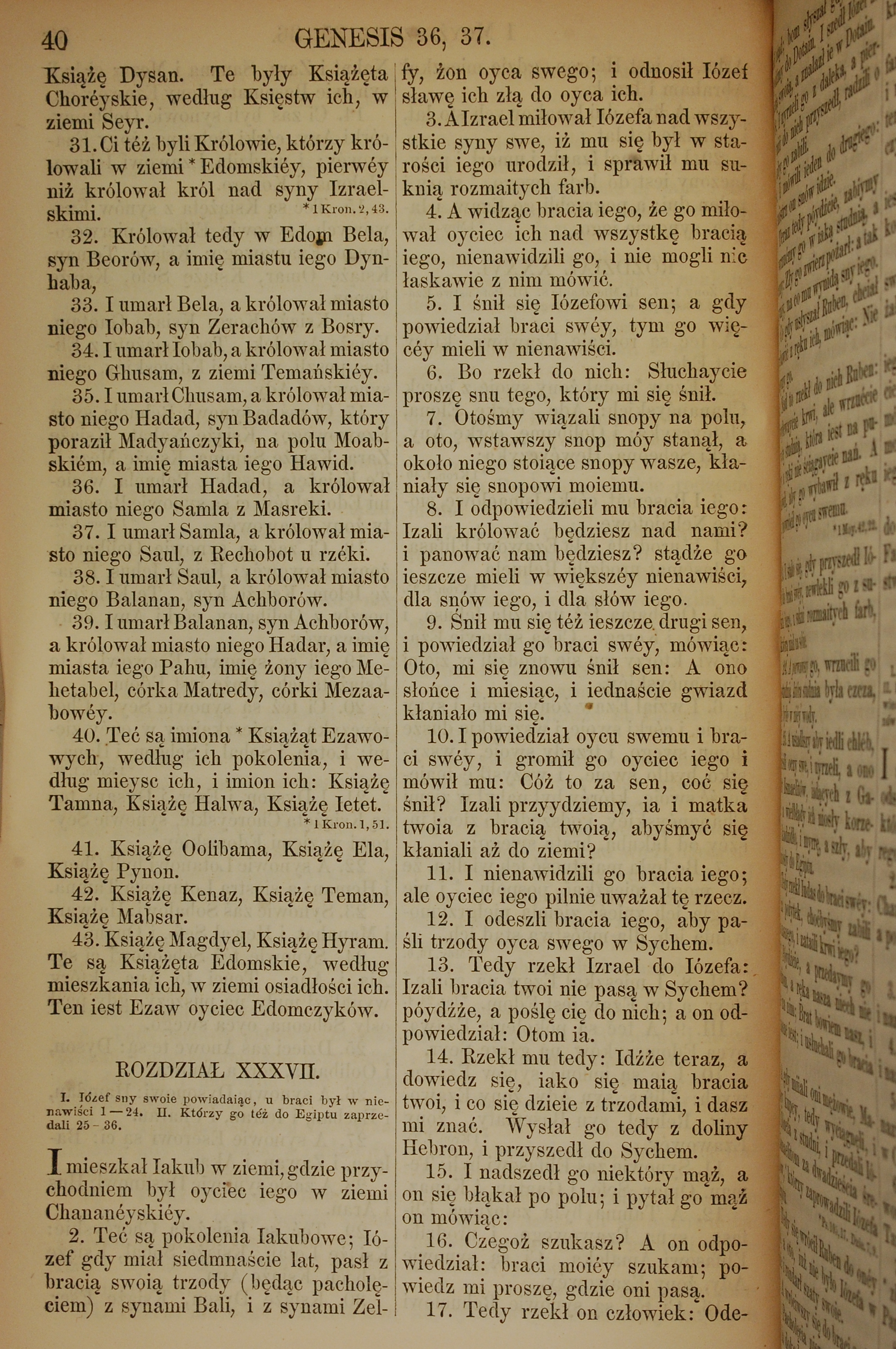 1857年波蘭文新舊約全書 創世記 36 章 31 節到 37 章 17 節