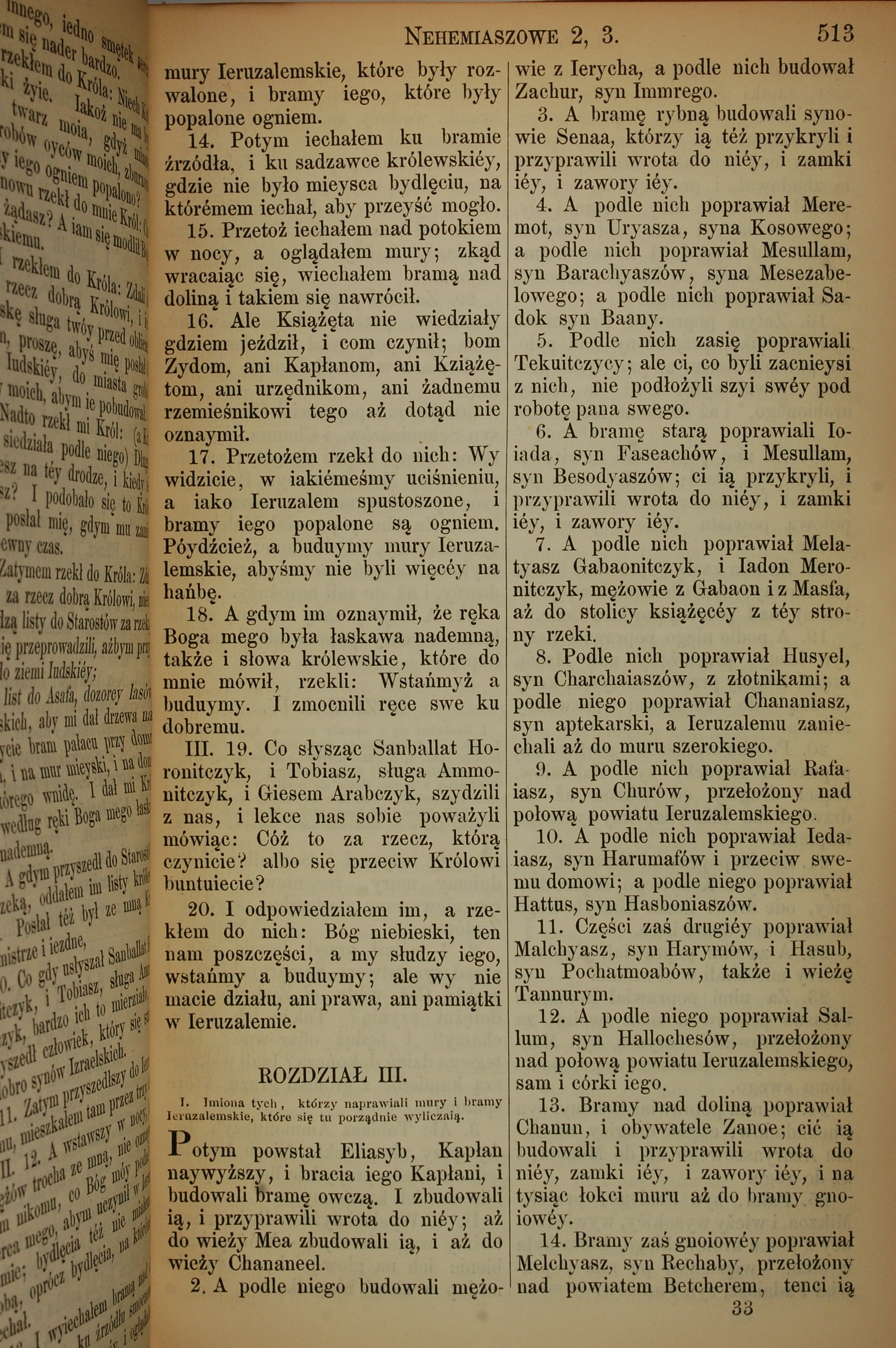 1857年波蘭文新舊約全書 尼希米記 2 章 14 節到 3 章 14 節