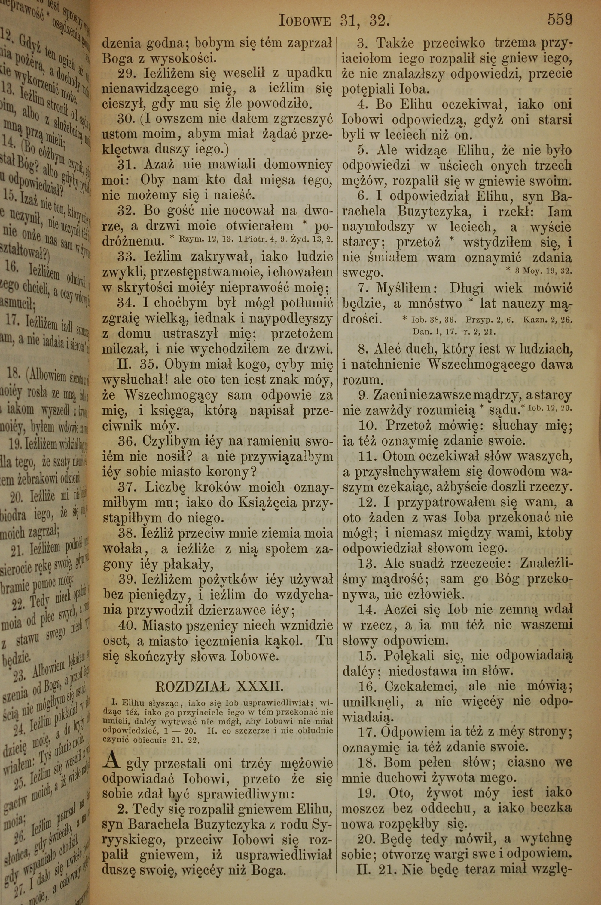 1857年波蘭文新舊約全書 約伯記 31 章 29 節到 32 章 21 節