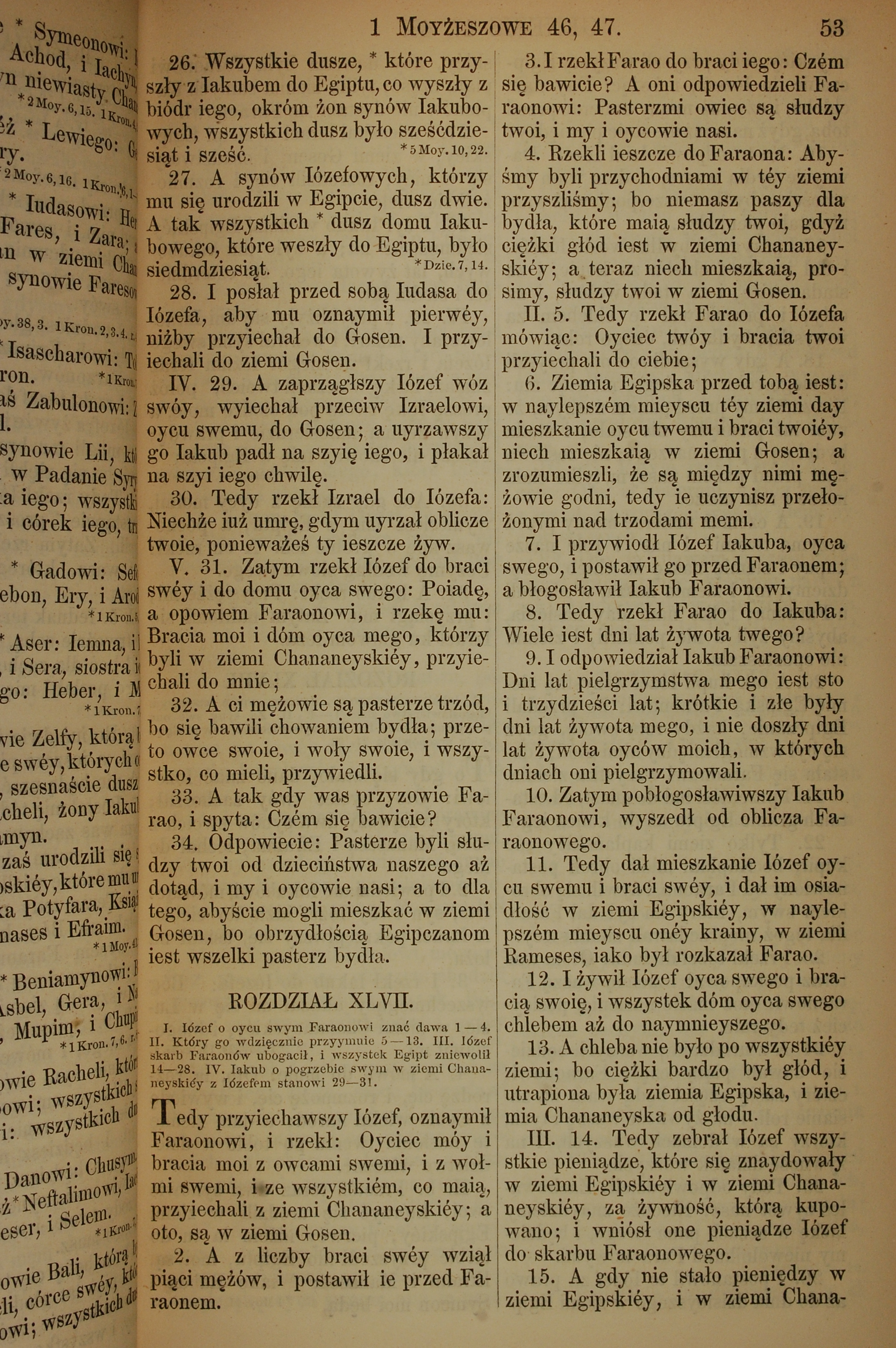 1857年波蘭文新舊約全書 創世記 46 章 26 節到 47 章 15 節