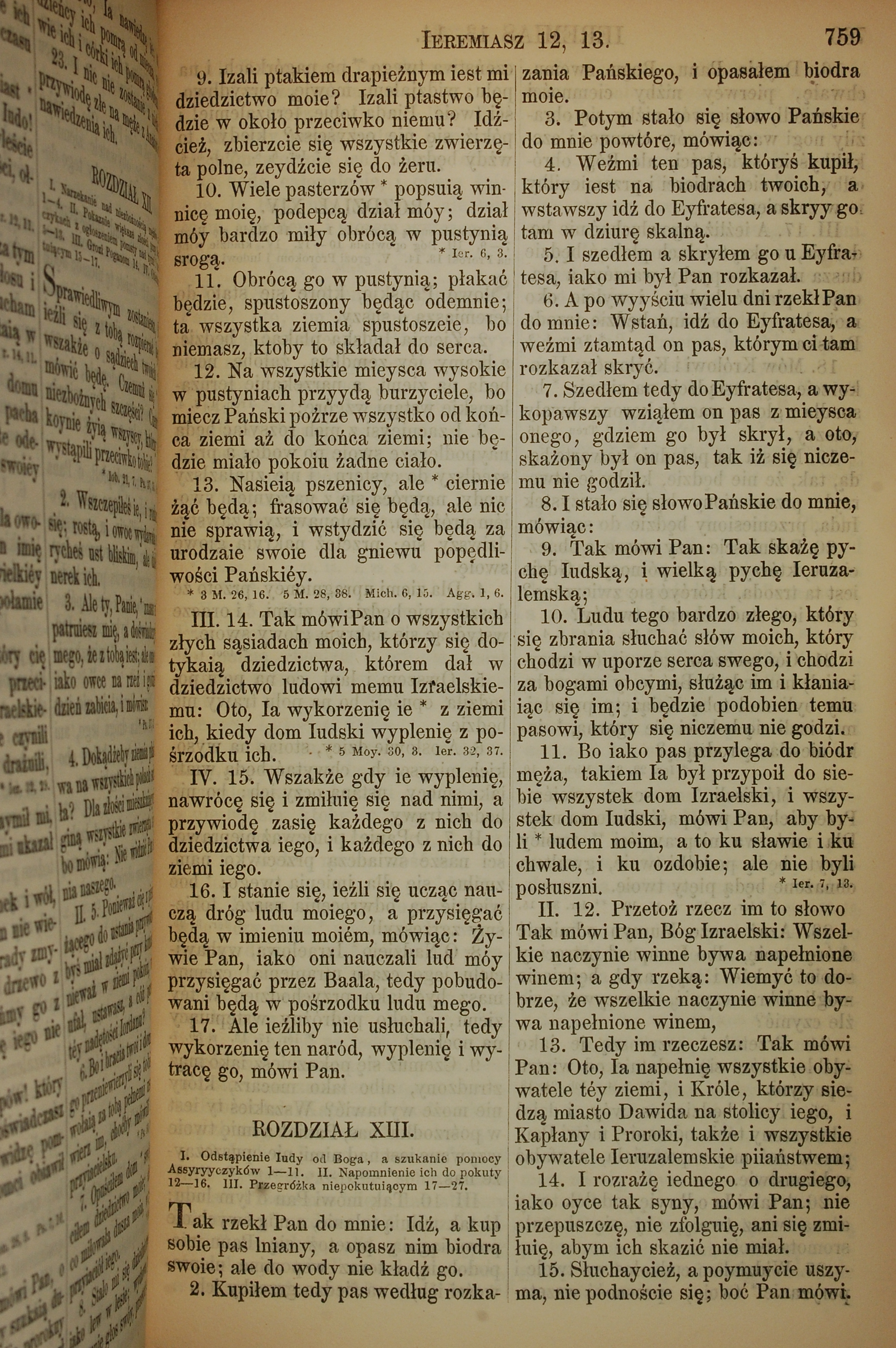 1857年波蘭文新舊約全書 耶利米書 12 章 9 節到 13 章 15 節