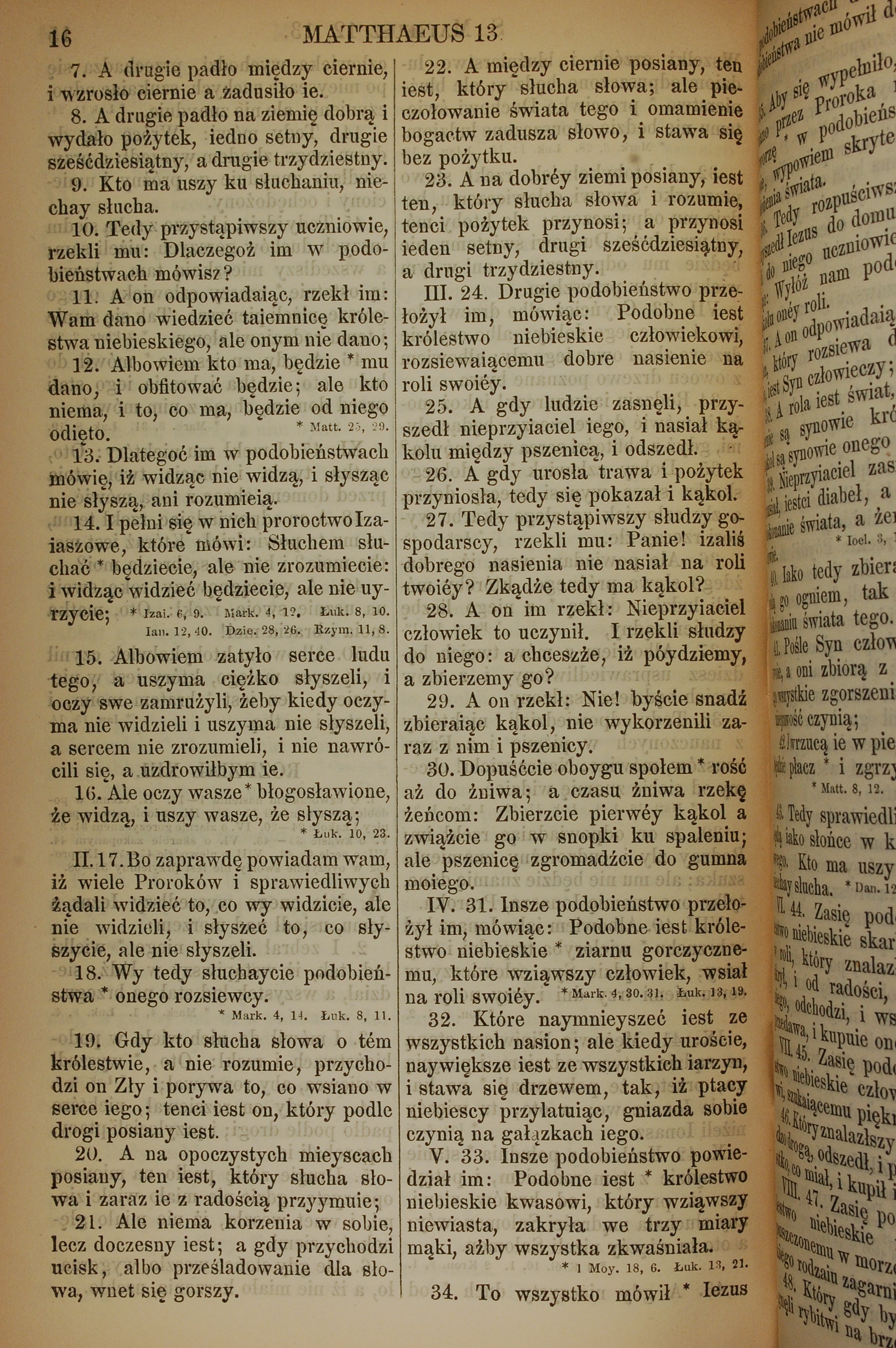 1857年波蘭文新舊約全書 馬太福音 13 章 7 節到 13 章 34 節