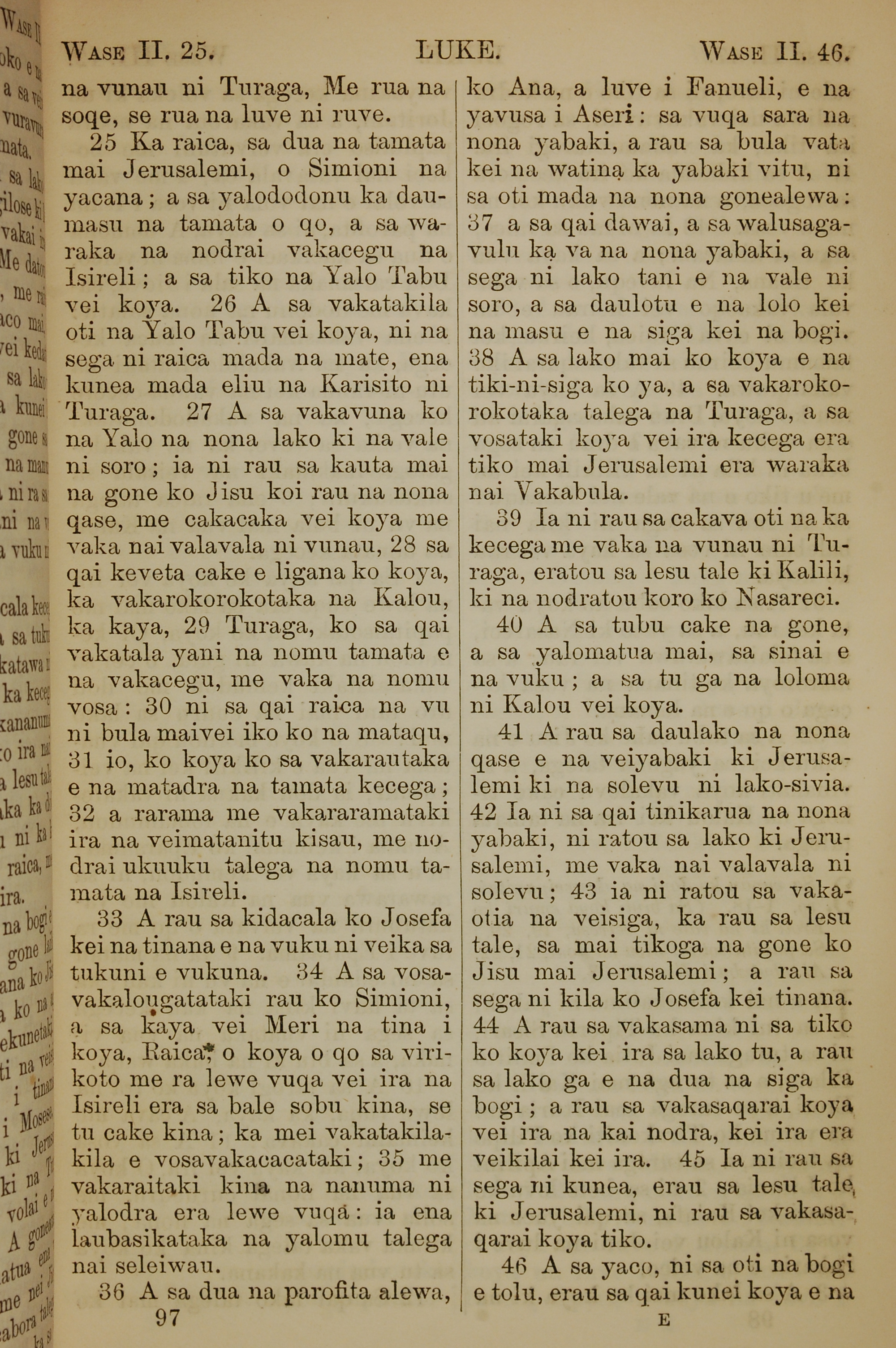 1858年斐濟文新約全書 路加福音 2 章 25 節到 2 章 46 節