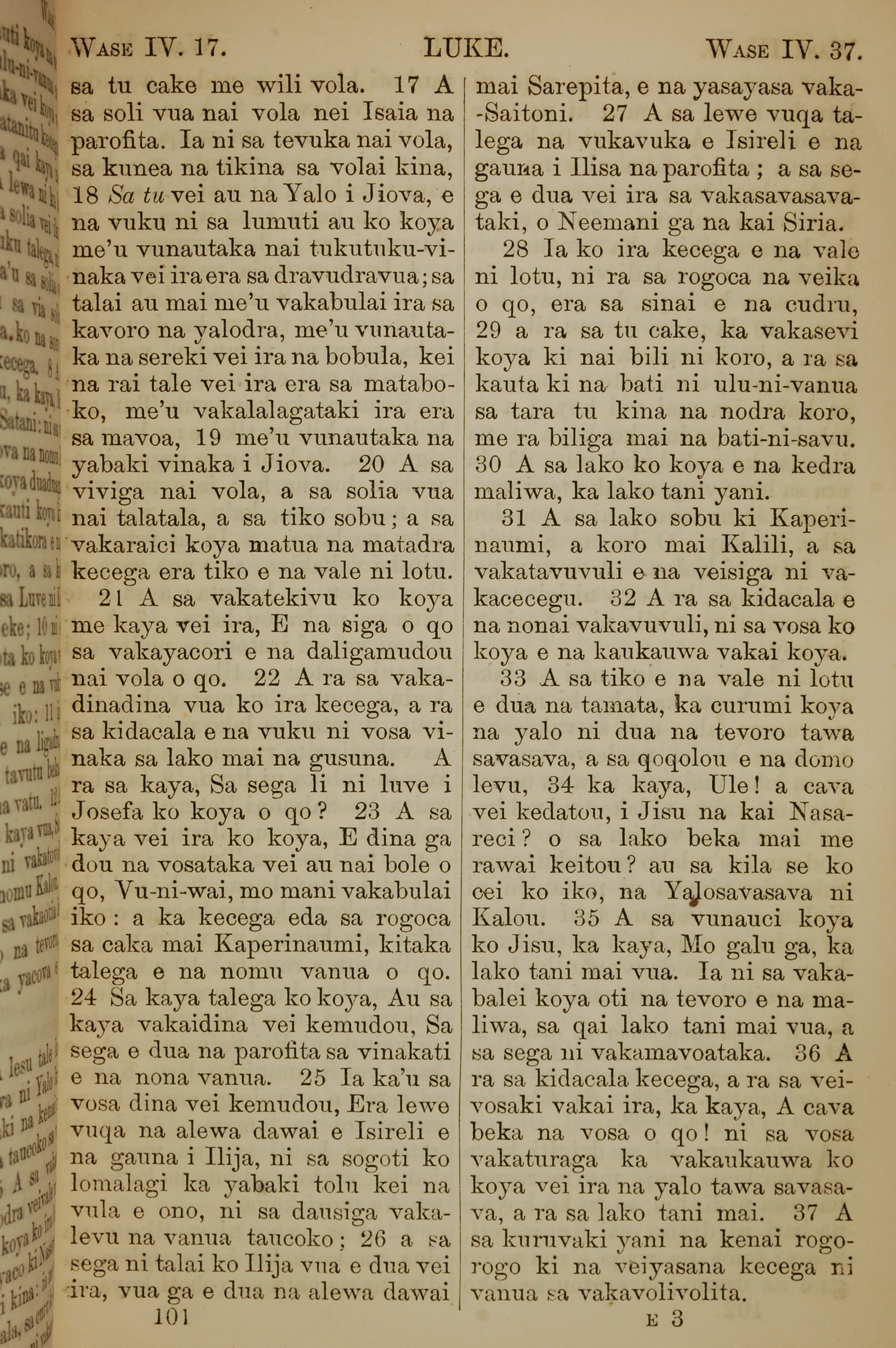 1858年斐濟文新約全書 路加福音 4 章 17 節到 4 章 37 節