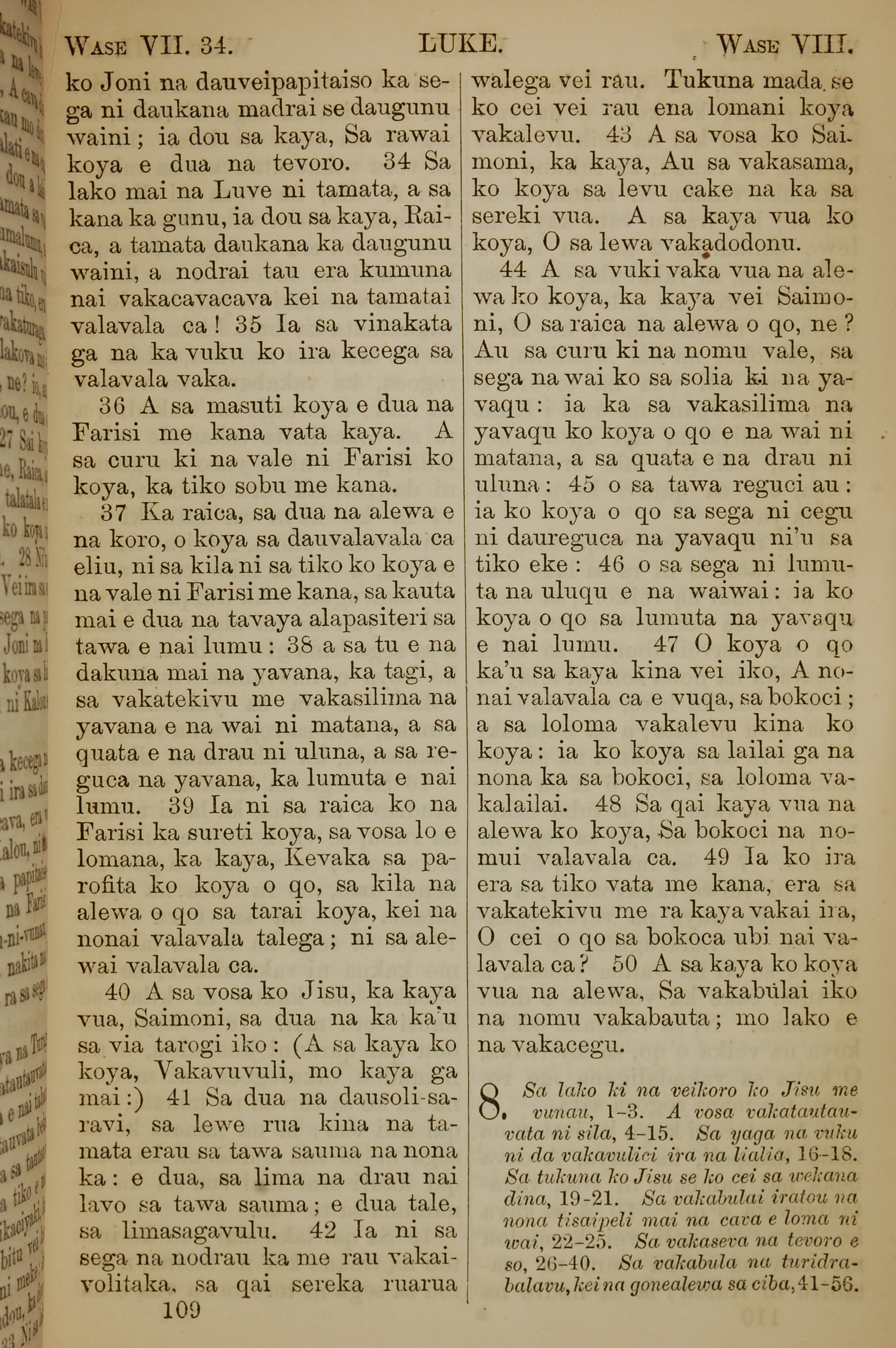 1858年斐濟文新約全書 路加福音 7 章 34 節到 7 章 50 節