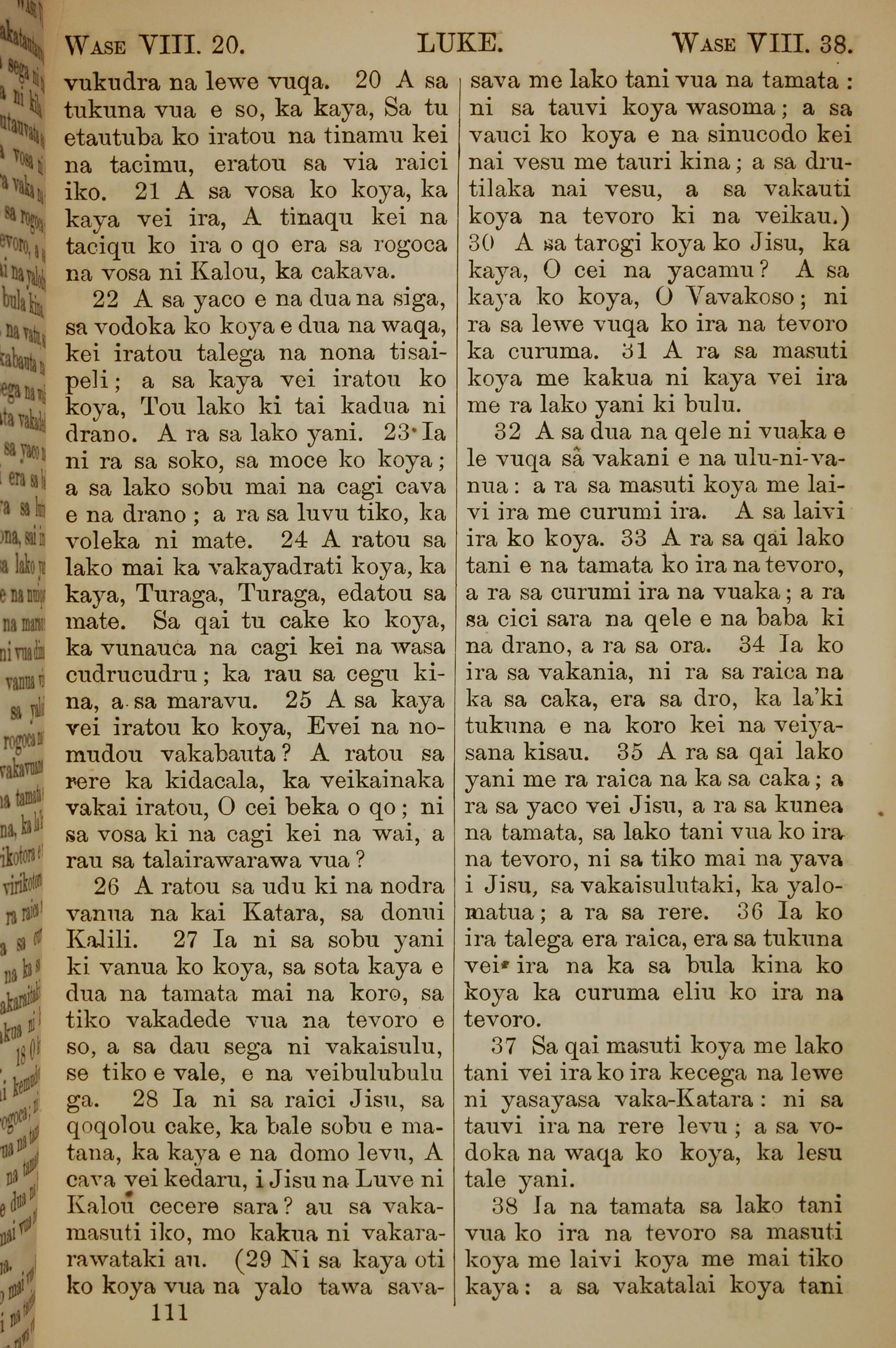 1858年斐濟文新約全書 路加福音 8 章 20 節到 8 章 38 節