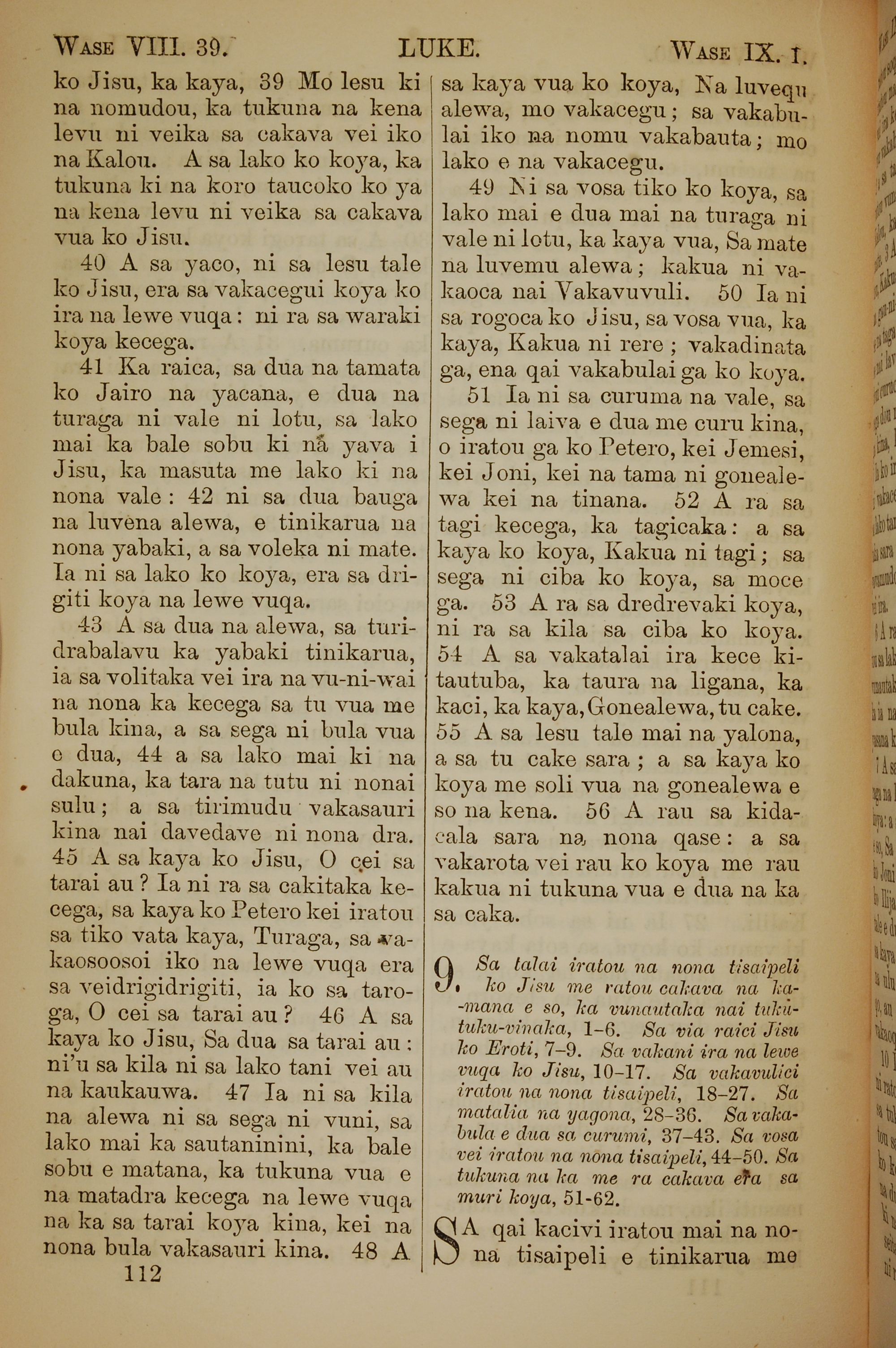1858年斐濟文新約全書 路加福音 8 章 39 節到 9 章 1 節