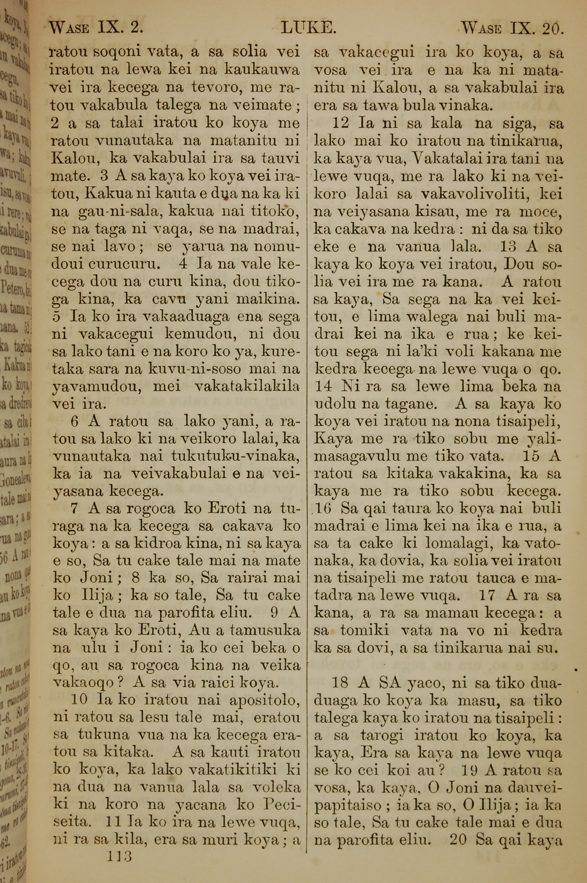1858年斐濟文新約全書 路加福音 9 章 2 節到 9 章 20 節