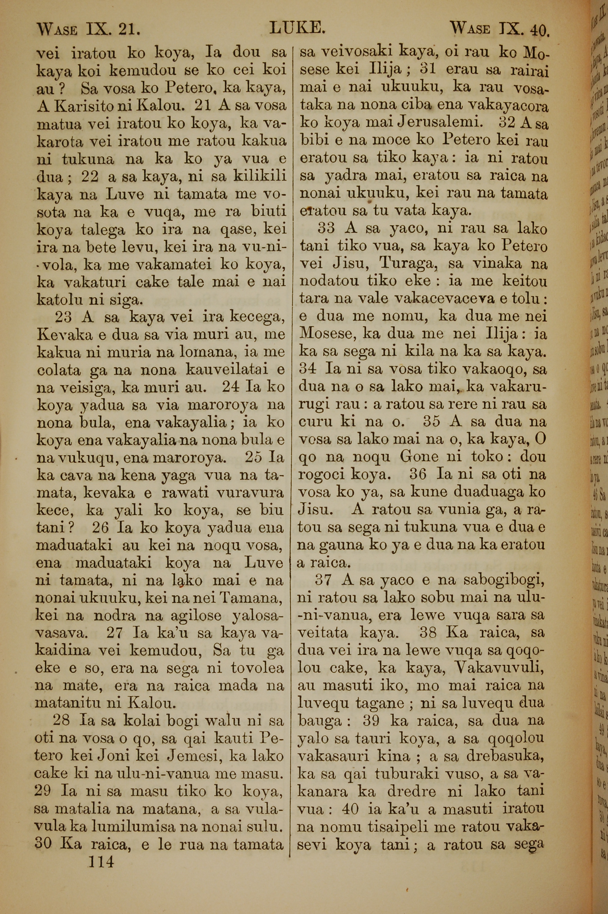 1858年斐濟文新約全書 路加福音 9 章 21 節到 9 章 40 節
