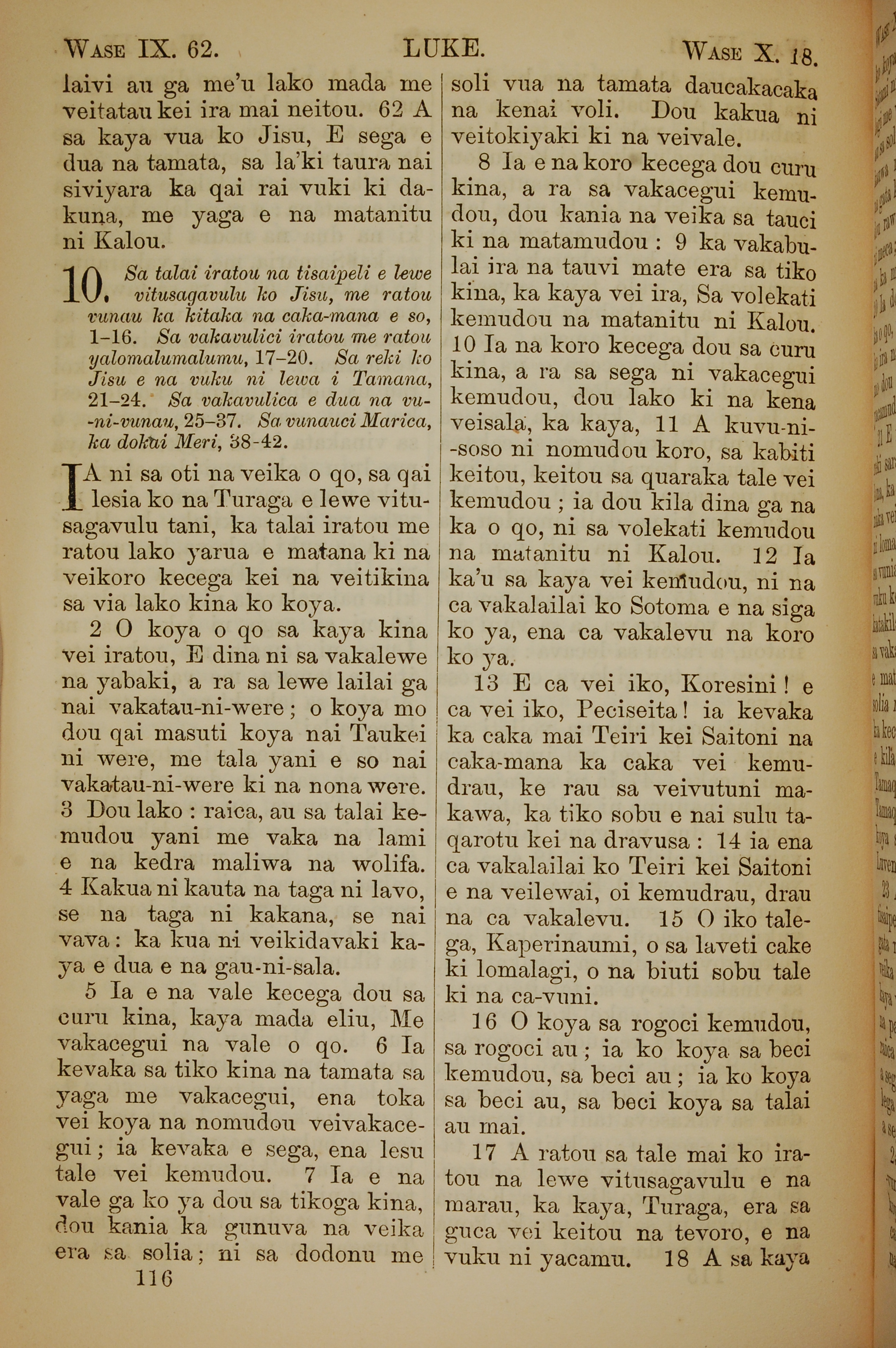 1858年斐濟文新約全書 路加福音 9 章 62 節到 10 章 18 節