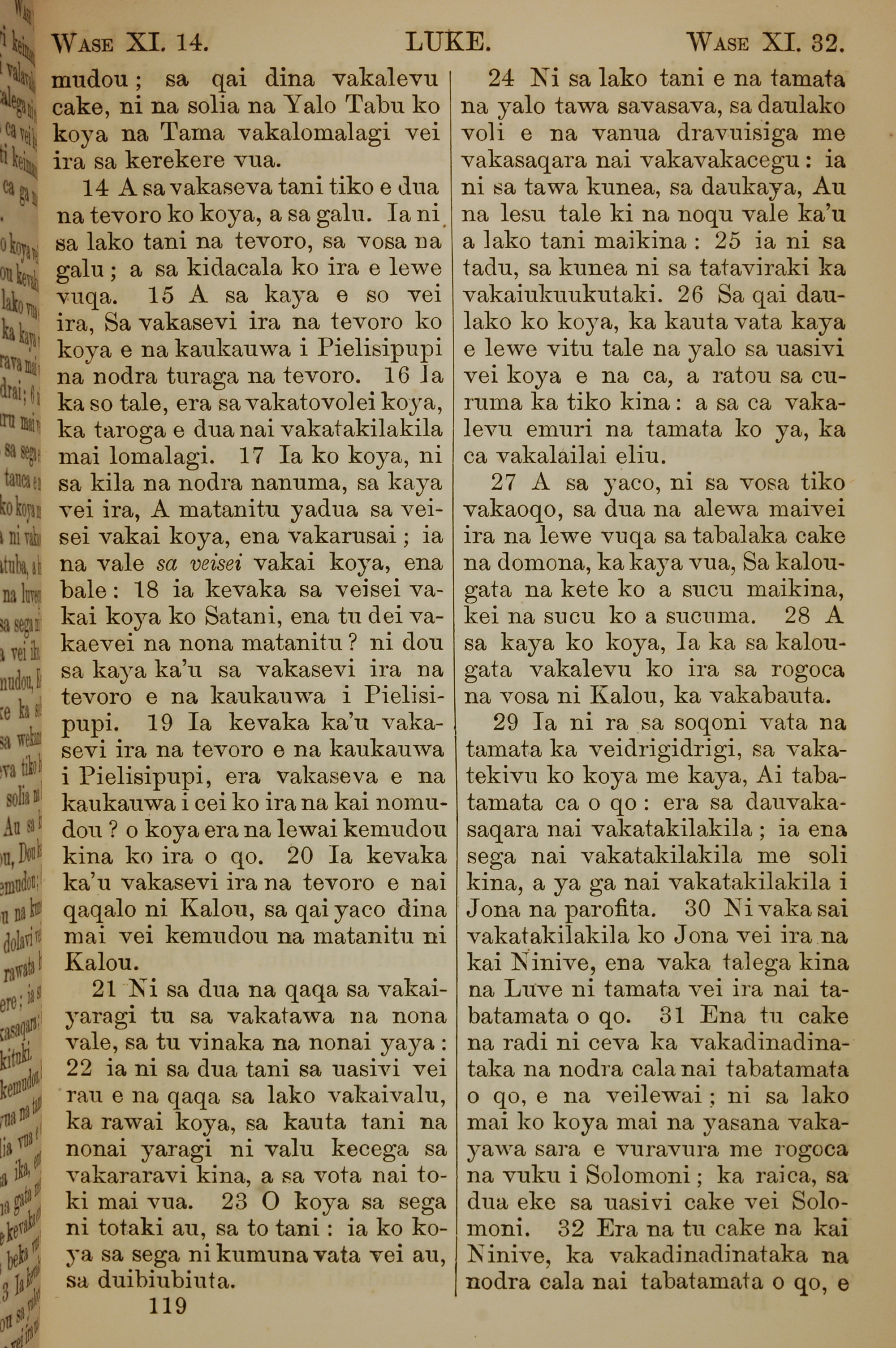 1858年斐濟文新約全書 路加福音 11 章 14 節到 11 章 32 節