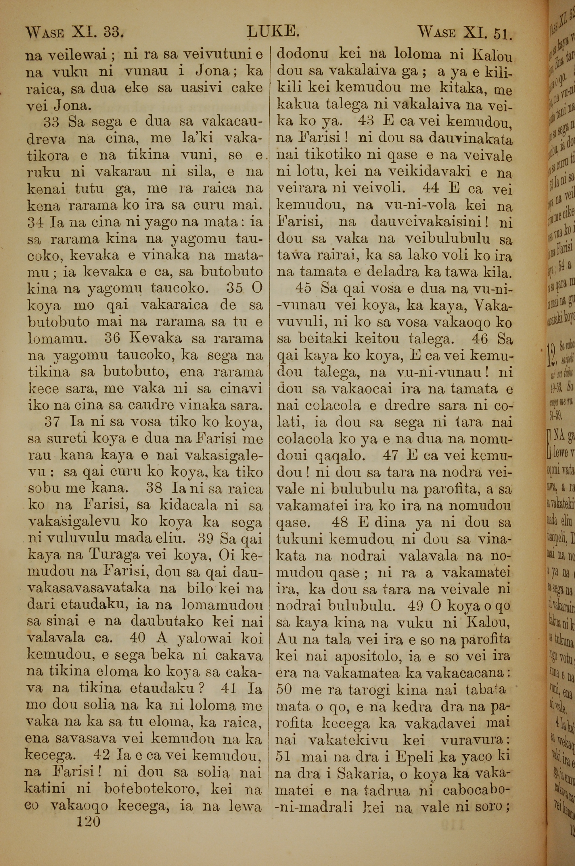 1858年斐濟文新約全書 路加福音 11 章 33 節到 11 章 51 節