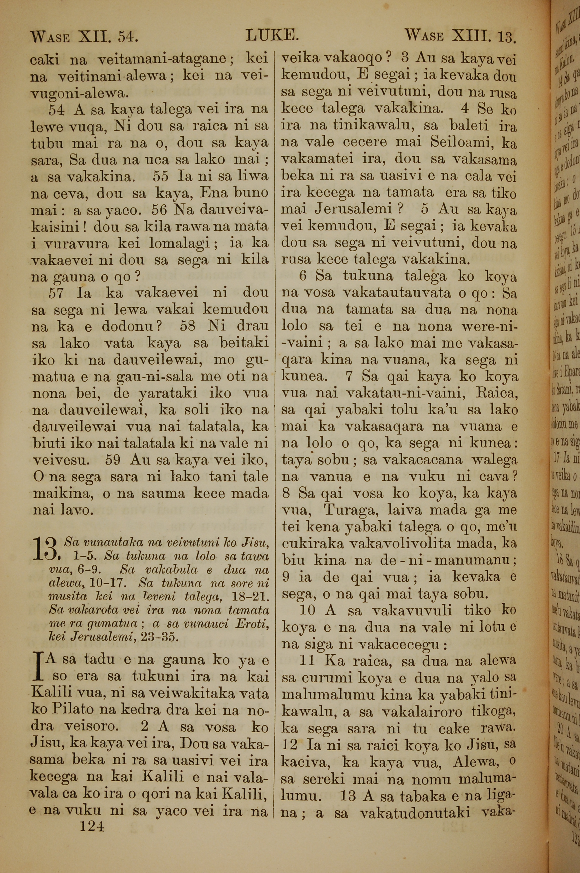 1858年斐濟文新約全書 路加福音 12 章 54 節到 13 章 13 節