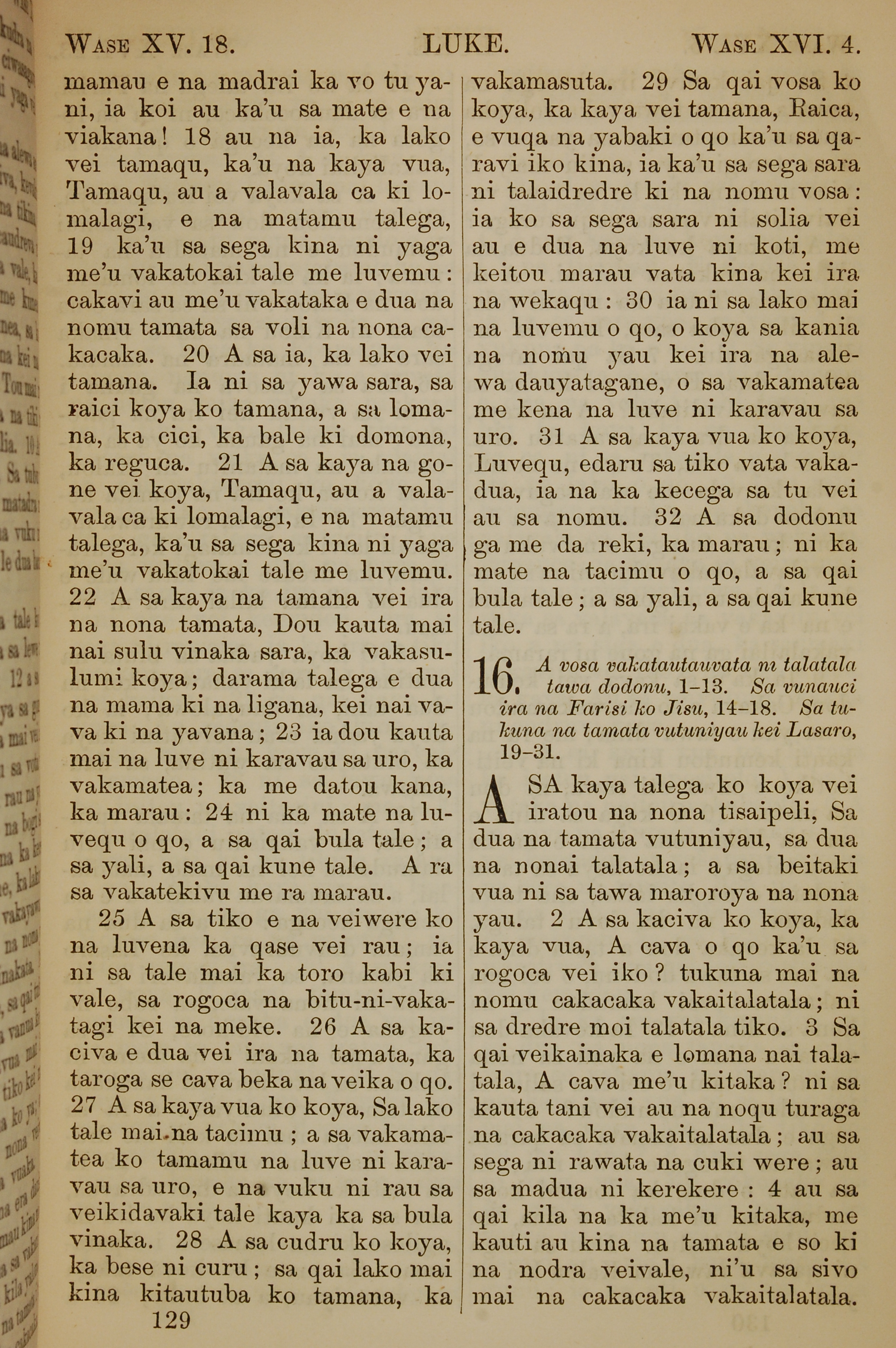 1858年斐濟文新約全書 路加福音 15 章 18 節到 16 章 4 節