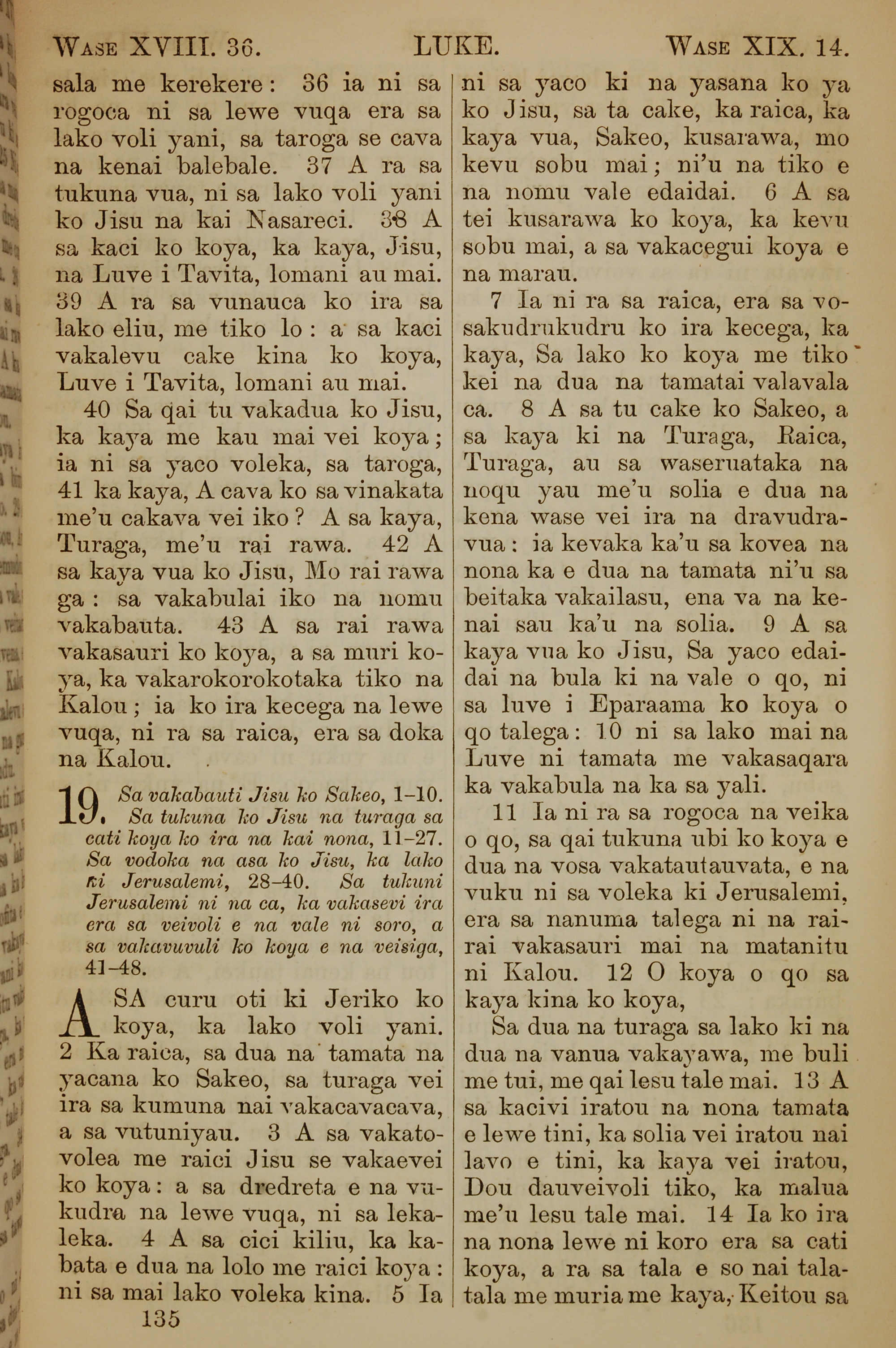 1858年斐濟文新約全書 路加福音 18 章 36 節到 19 章 14 節
