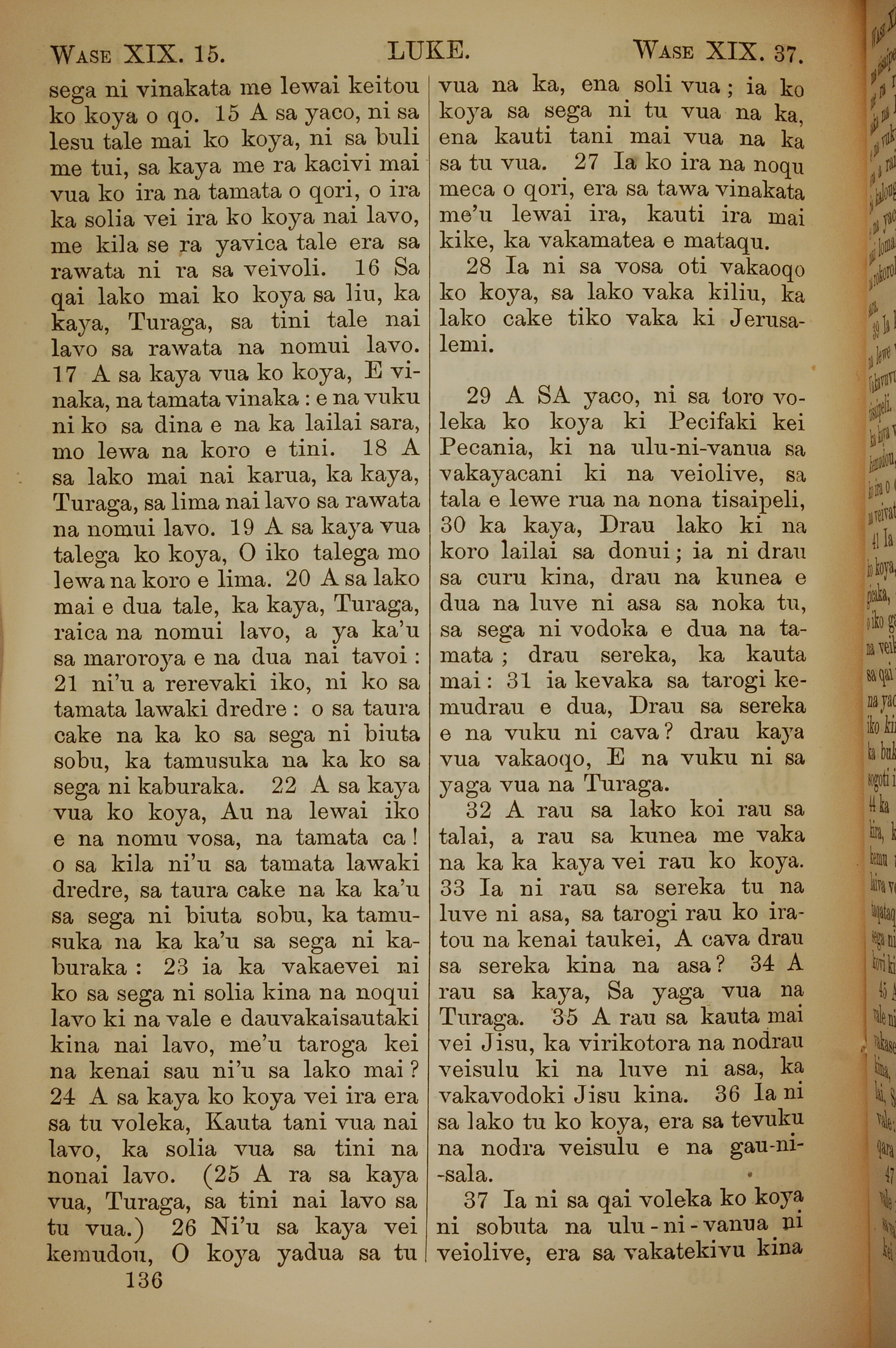 1858年斐濟文新約全書 路加福音 19 章 15 節到 19 章 37 節