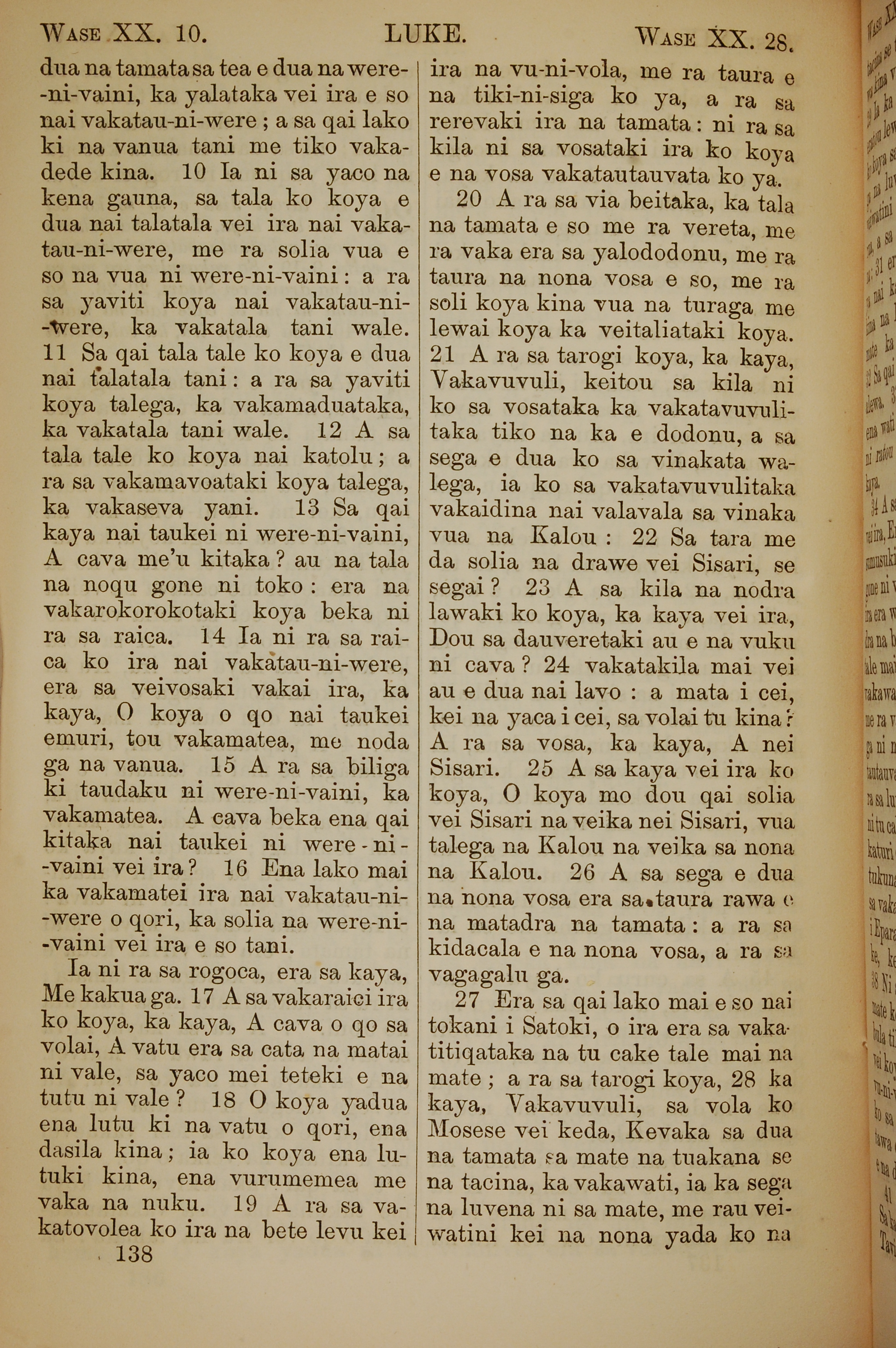 1858年斐濟文新約全書 路加福音 20 章 10 節到 20 章 28 節