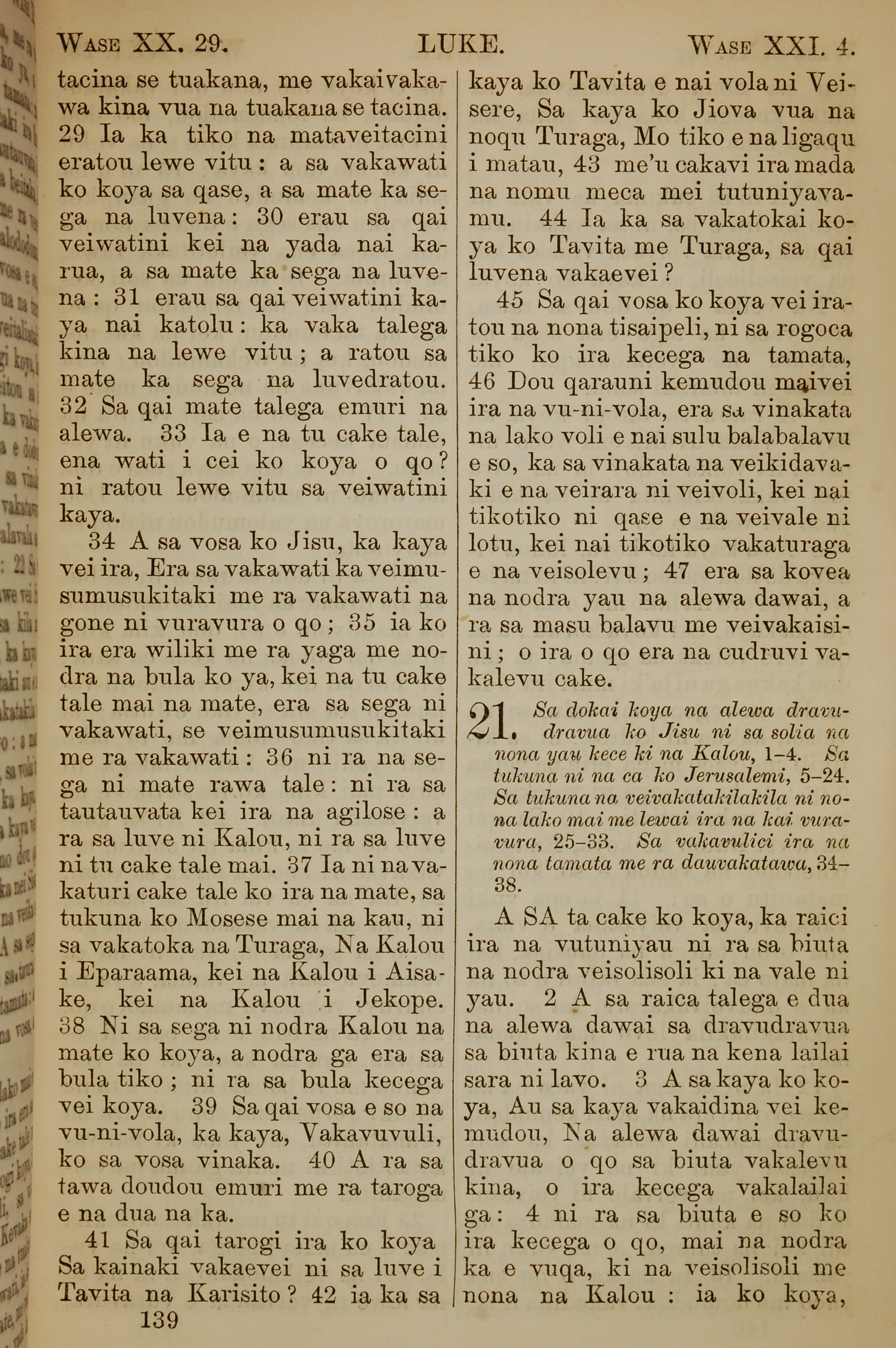 1858年斐濟文新約全書 路加福音 20 章 29 節到 21 章 4 節