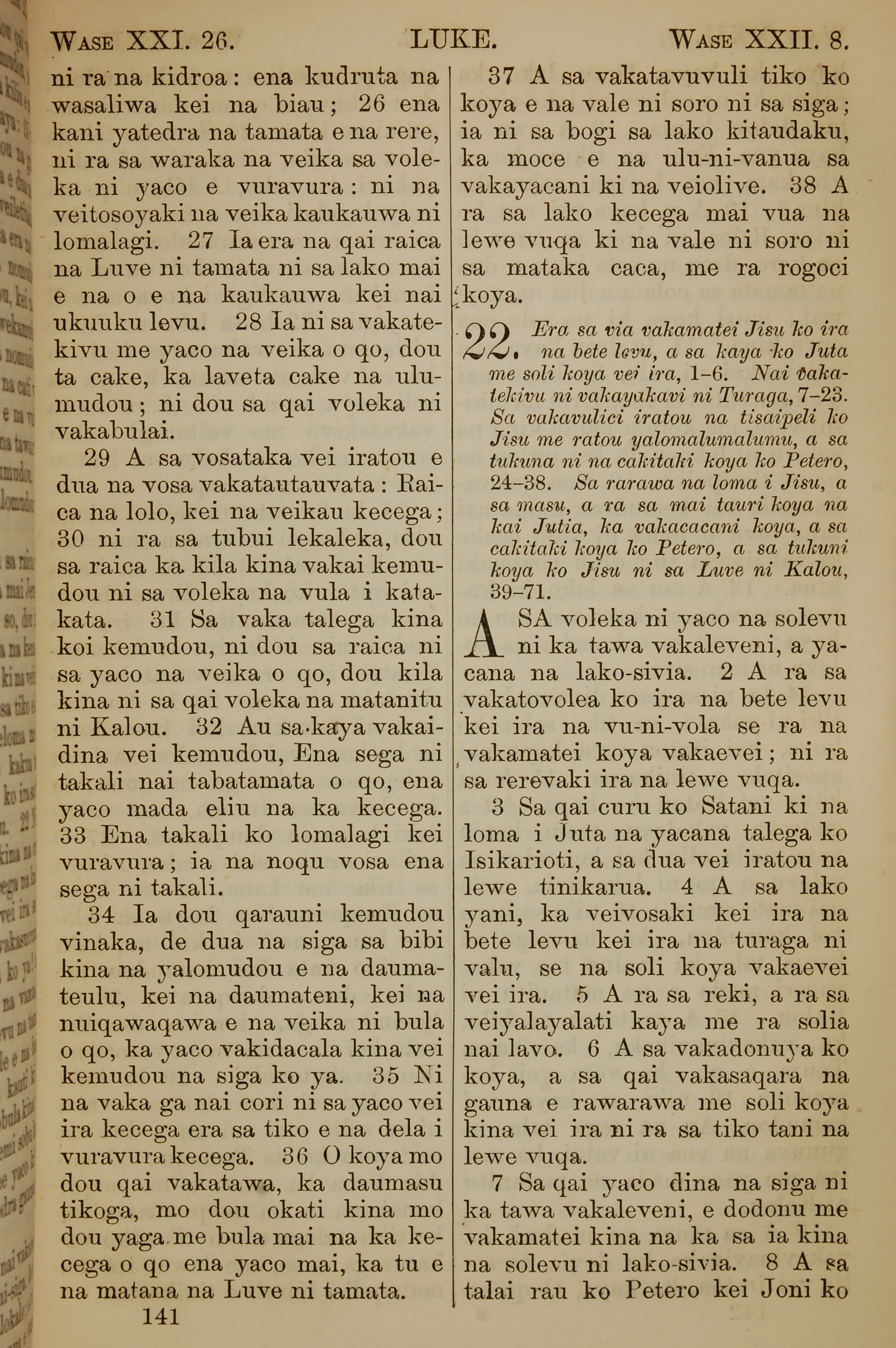 1858年斐濟文新約全書 路加福音 21 章 26 節到 22 章 8 節