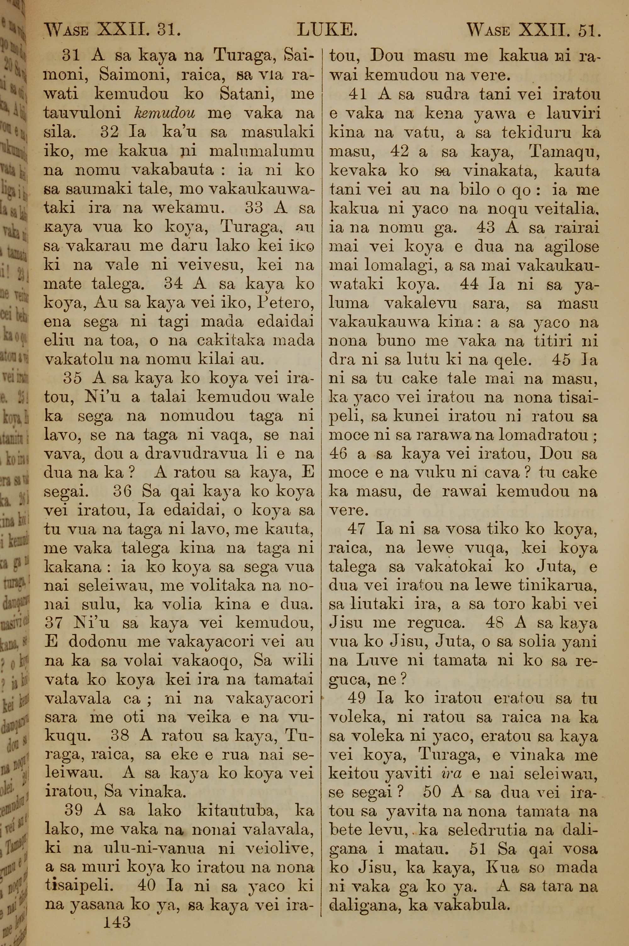 1858年斐濟文新約全書 路加福音 22 章 31 節到 22 章 51 節