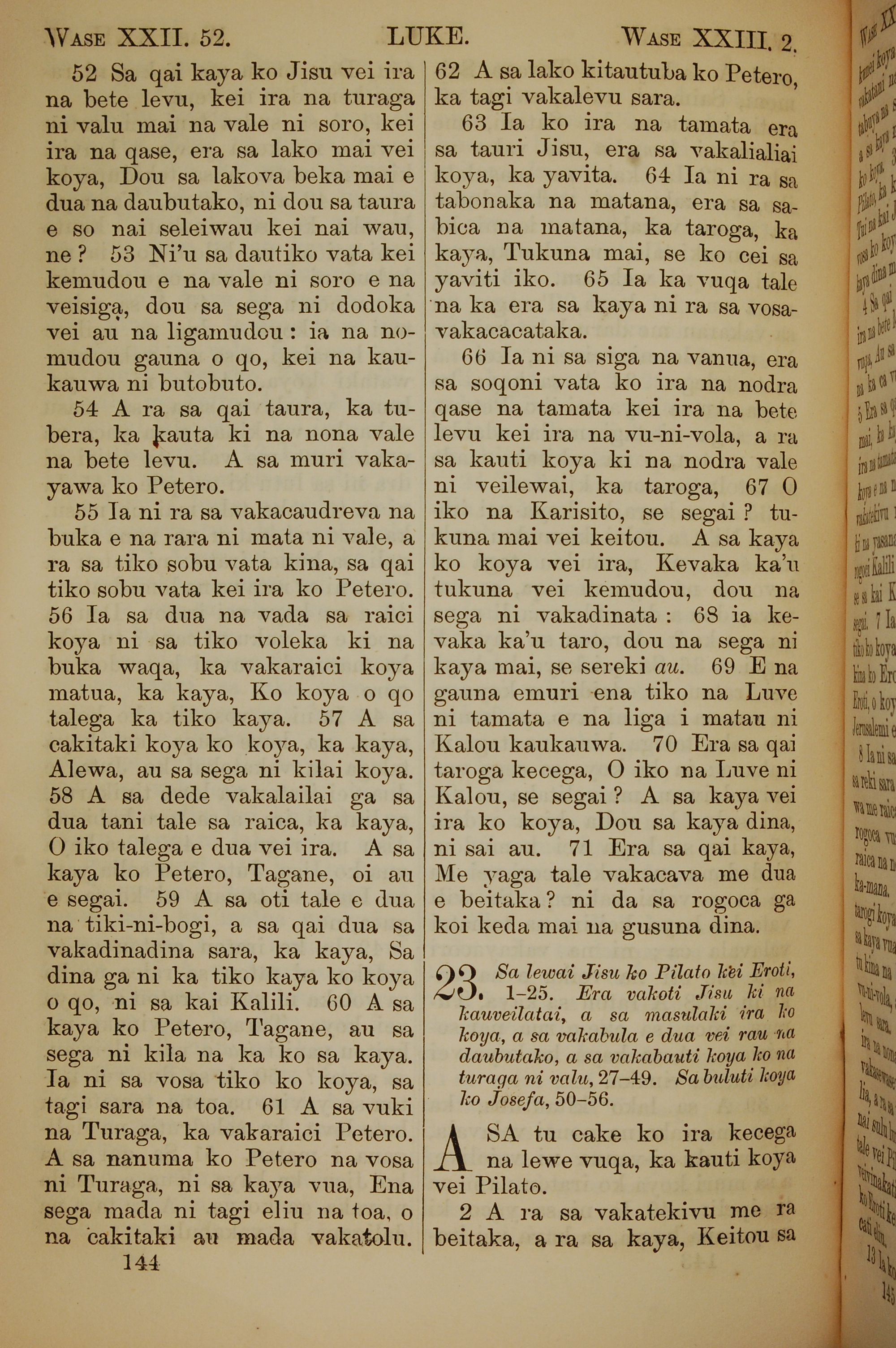 1858年斐濟文新約全書 路加福音 22 章 52 節到 23 章 2 節