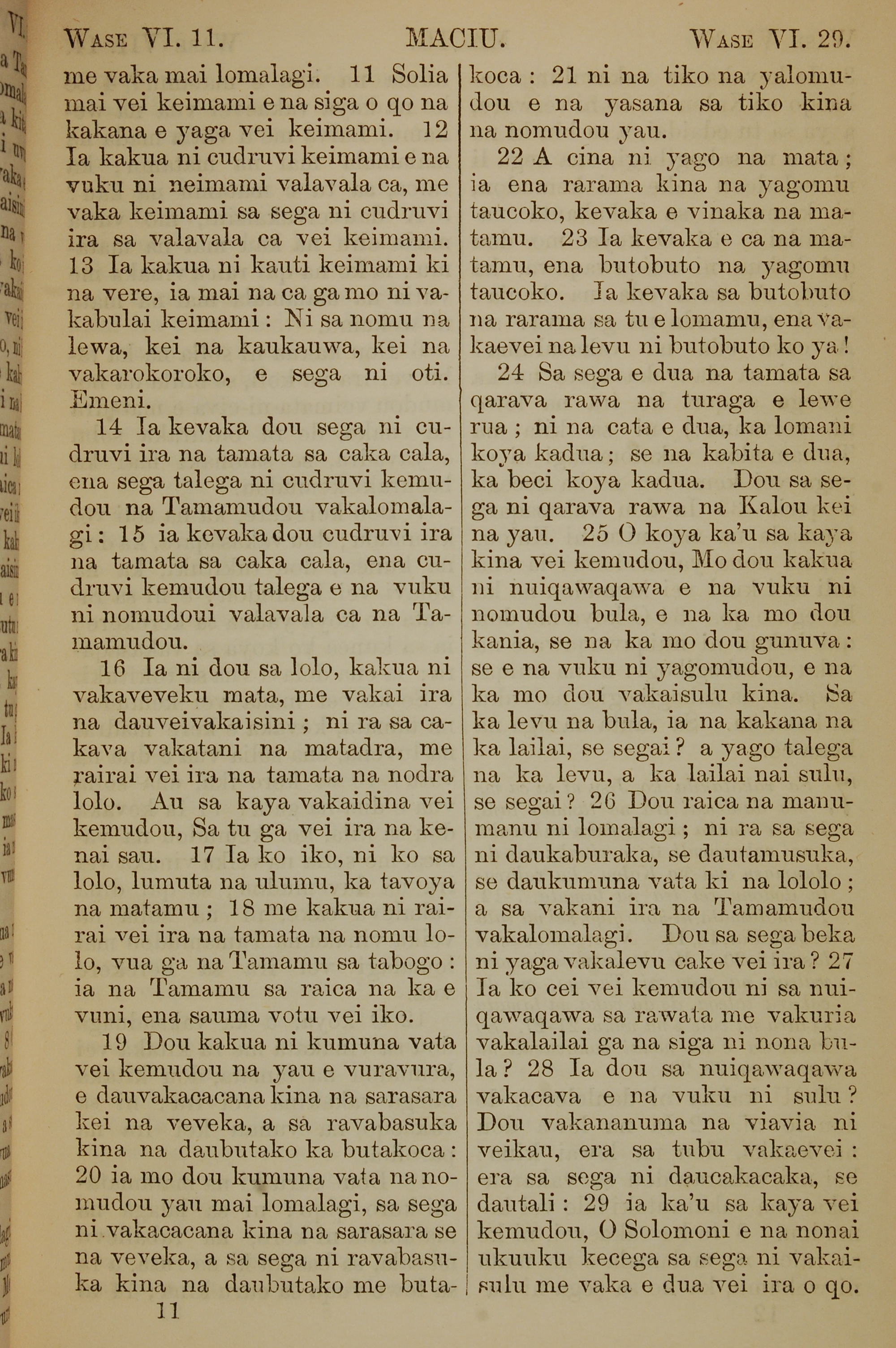 1858年斐濟文新約全書 馬太福音 6 章 11 節到 6 章 29 節