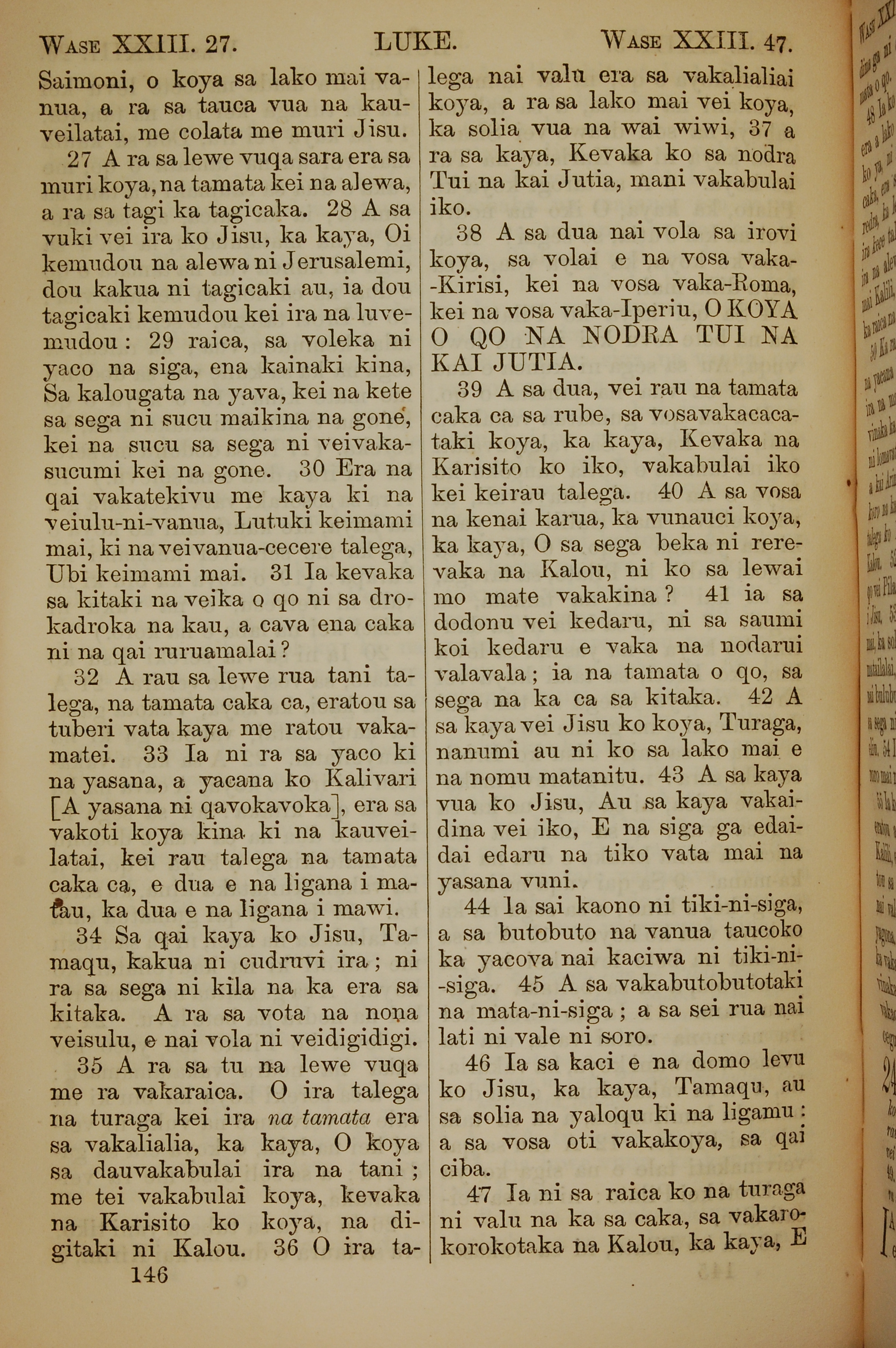 1858年斐濟文新約全書 路加福音 23 章 27 節到 23 章 47 節