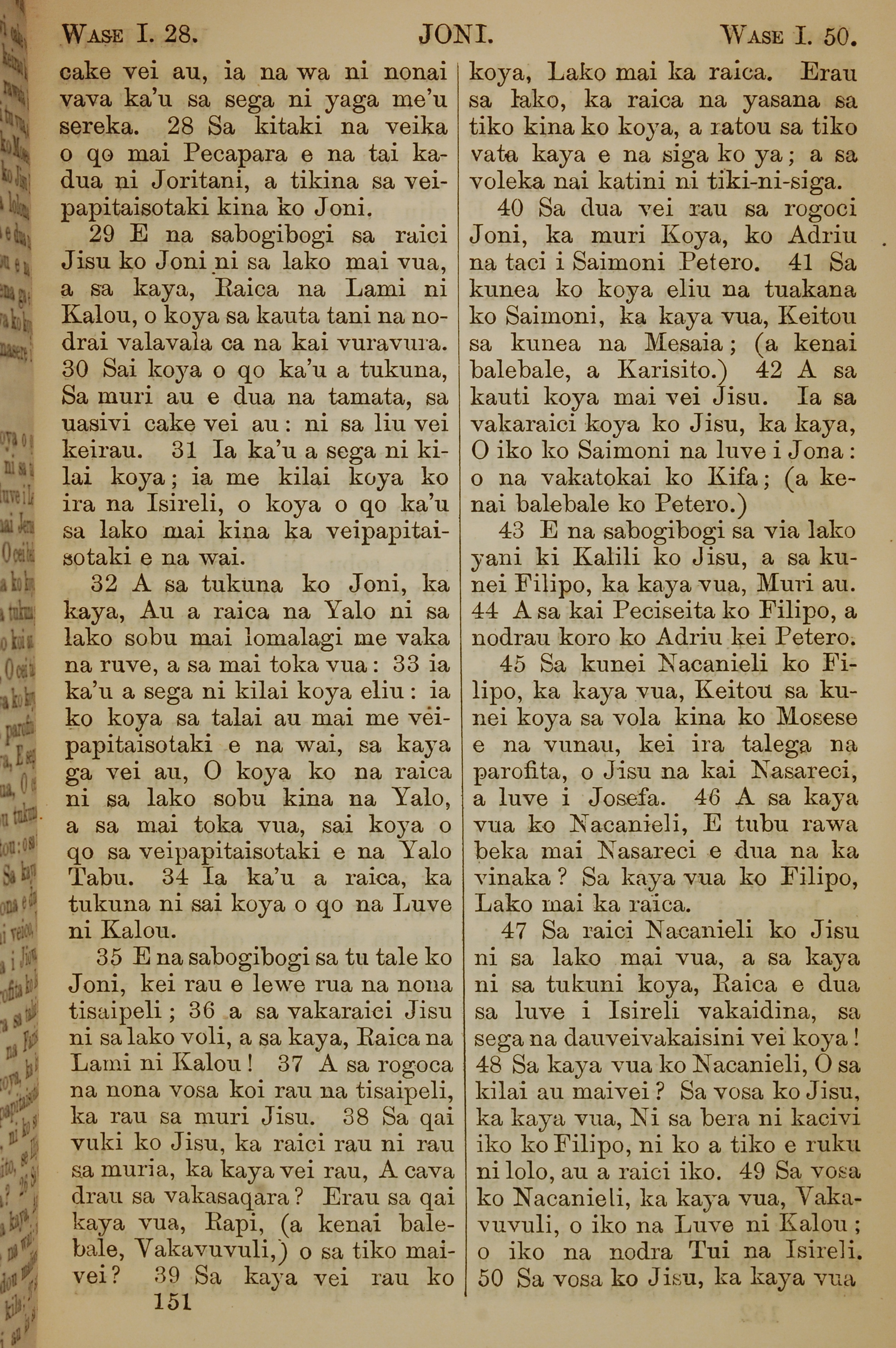 1858年斐濟文新約全書 約翰福音 1 章 28 節到 1 章 50 節