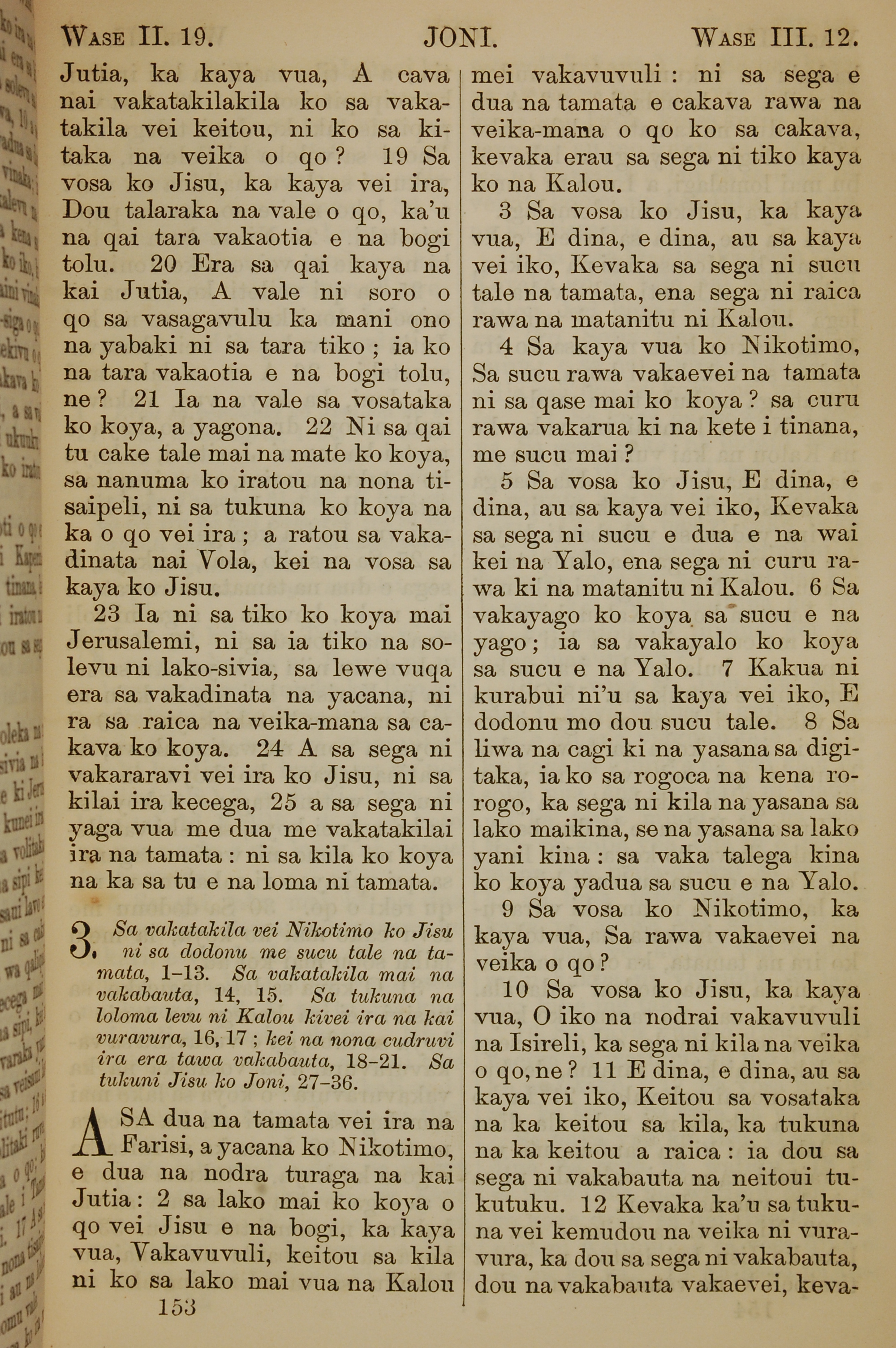 1858年斐濟文新約全書 約翰福音 2 章 19 節到 3 章 12 節