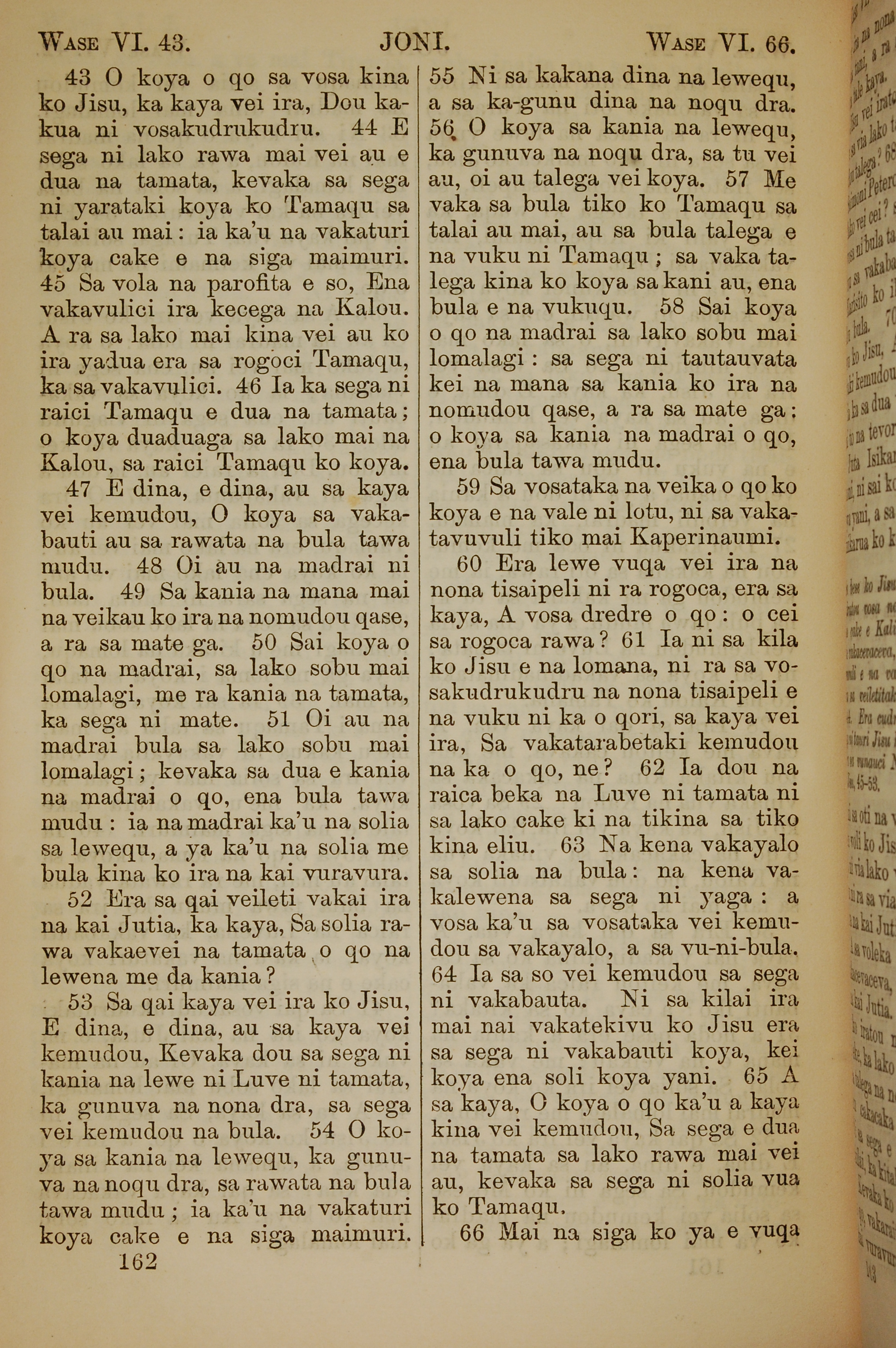 1858年斐濟文新約全書 約翰福音 6 章 43 節到 6 章 66 節