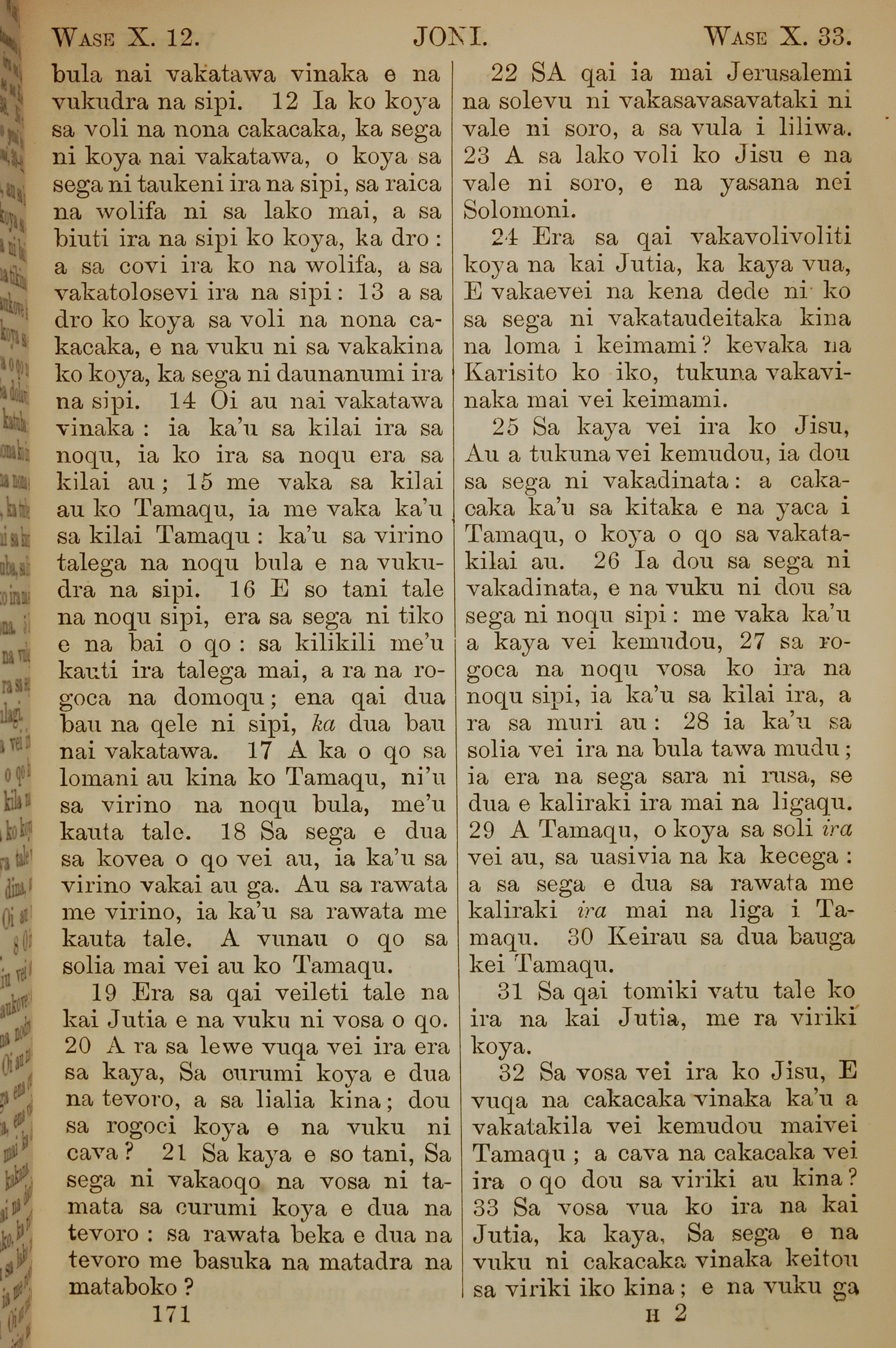 1858年斐濟文新約全書 約翰福音 10 章 12 節到 10 章 33 節