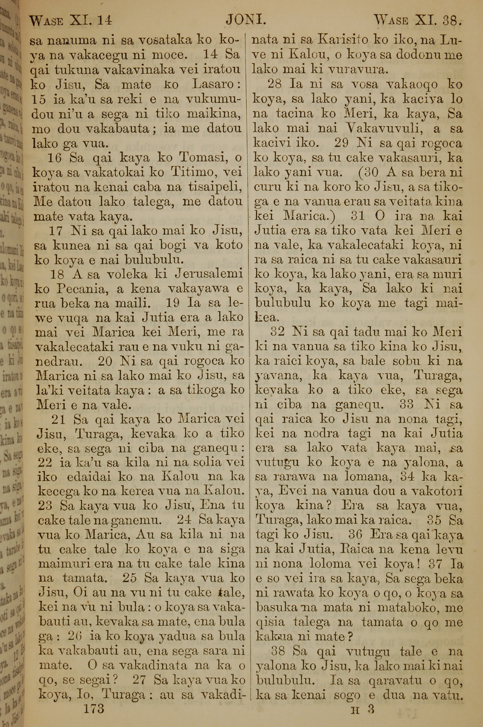 1858年斐濟文新約全書 約翰福音 11 章 14 節到 11 章 38 節