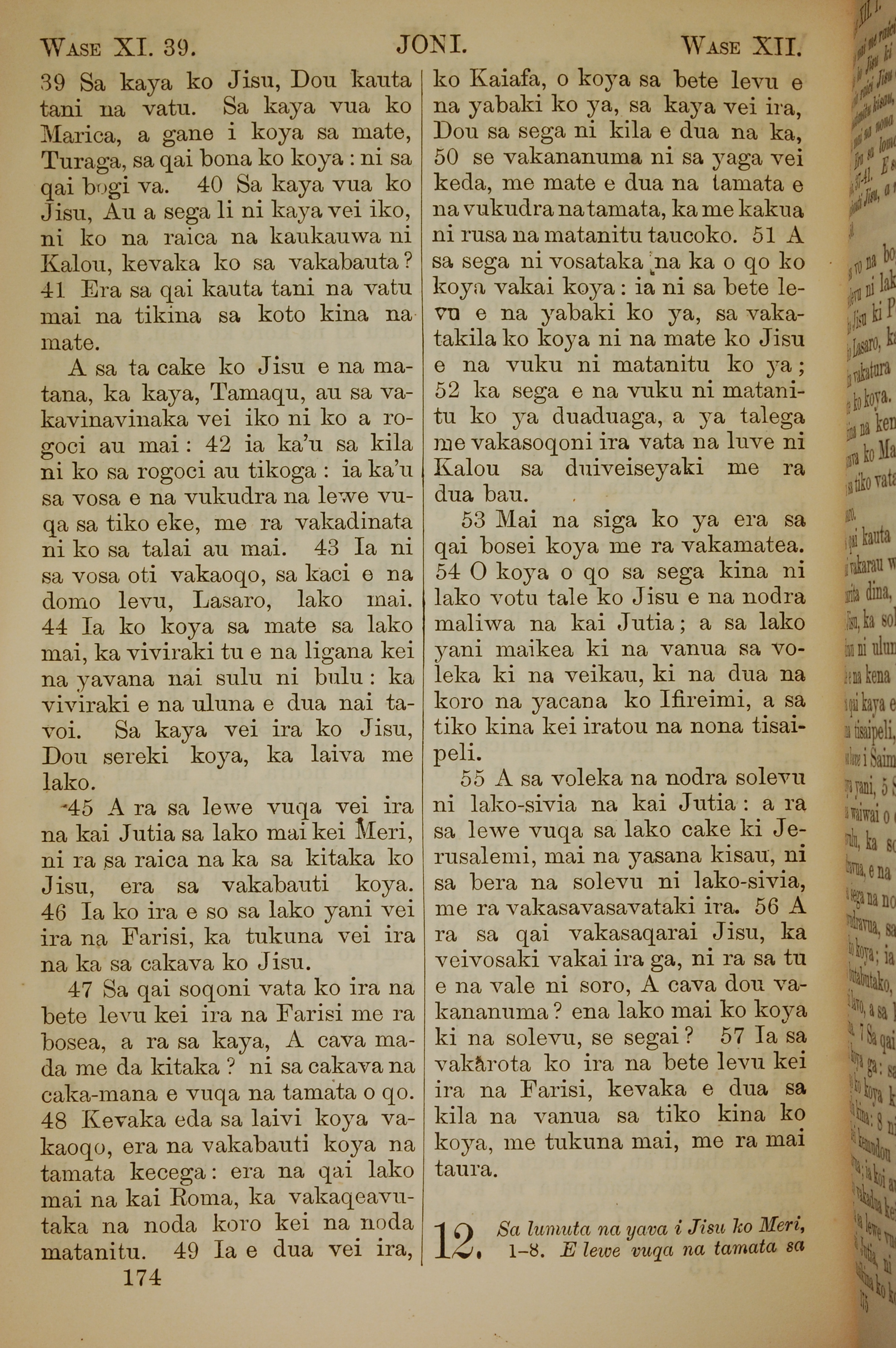 1858年斐濟文新約全書 約翰福音 11 章 39 節到 11 章 57 節
