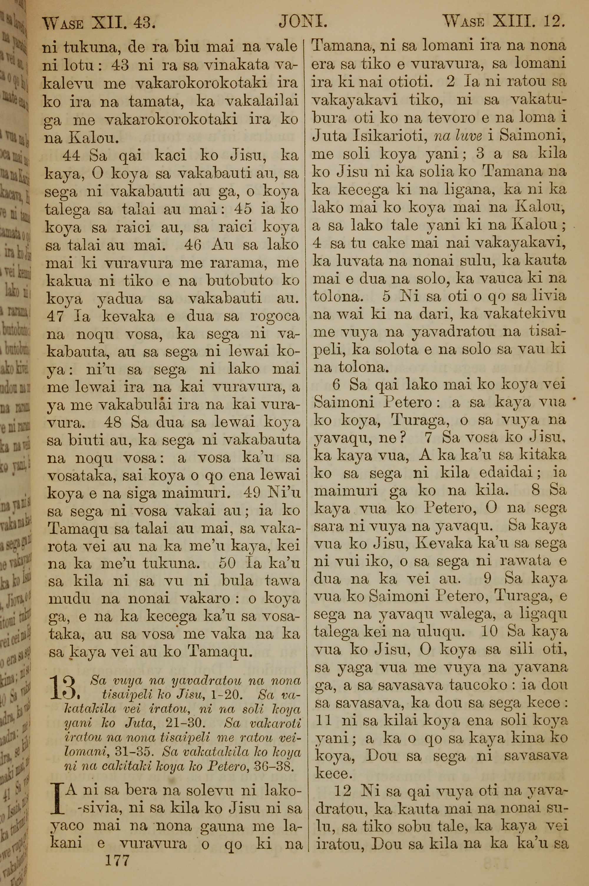 1858年斐濟文新約全書 約翰福音 12 章 43 節到 13 章 12 節